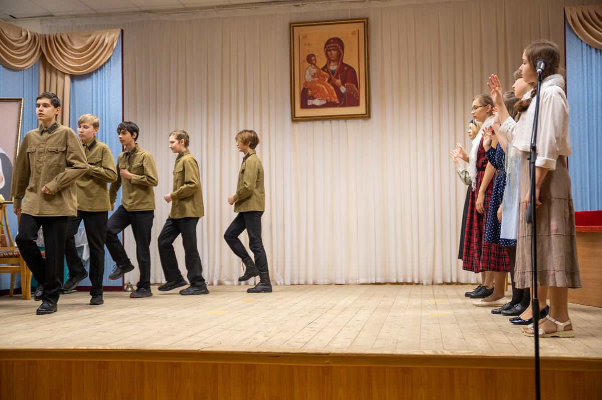 В программе вечера прозвучали духовные песнопения в исполнении детско-юношеского хора «Благовест» под управлением регента Татьяны Черновой. Также был показан спектакль «Военное детство Алеши Ридигера», подготовленный молодежным театром «Встречая чудо» гимназии имени Сергия Радонежского г. Йошкар-Олы. Спектакль рассказывает о страданиях детей в годы войны. Юный Алеша (будущий Патриарх) вместе с отцом – священником Михаилом Ридигером посещал заключенных концлагерей, в том числе детских…