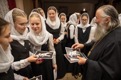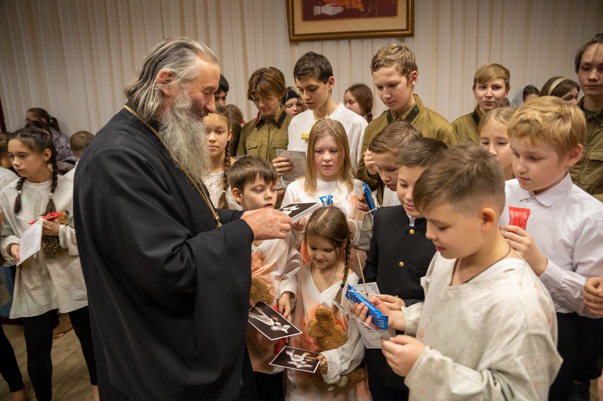 В завершение хор пропел «Вечную память» приснопоминаемому Патриарху. На молитвенную память о почившем Предстоятеле Русской Православной Церкви владыка Иоанн раздал юным актерам и хористам открытки с изображением и высказываниями Патриарха Алексия II и шоколадки.