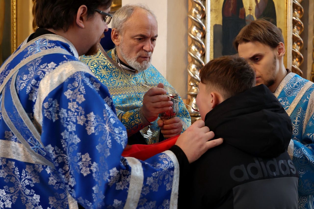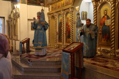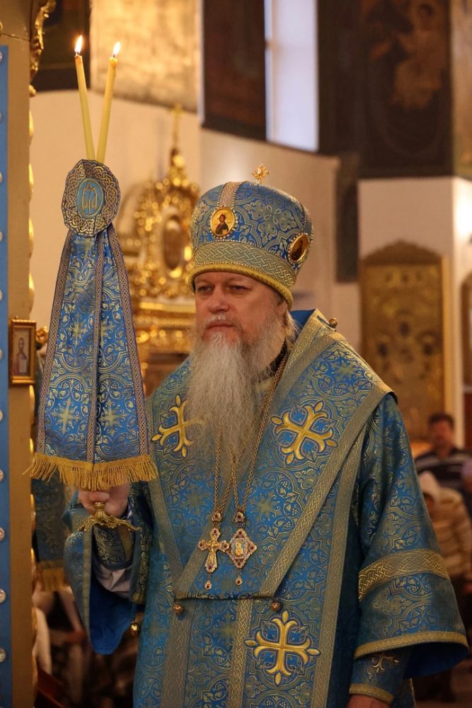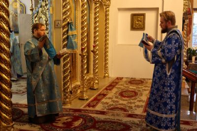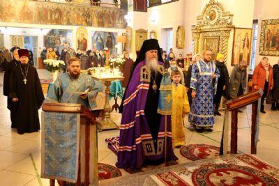 Владыке сослужили клирики собора. Песнопения исполняли два хора: архиерейский и детско-юношеский.