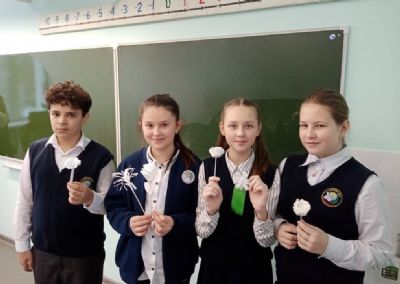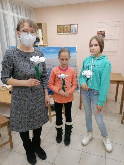 На уроках милосердия ребята изготовили бумажные белые цветы – символы благотворительной акции. Эти цветы в дальнейшем будут дариться на память благотворителям, а собранные средства пойдут на лечение, реабилитацию и приобретение специального оборудования для лечения тяжелобольных детей.