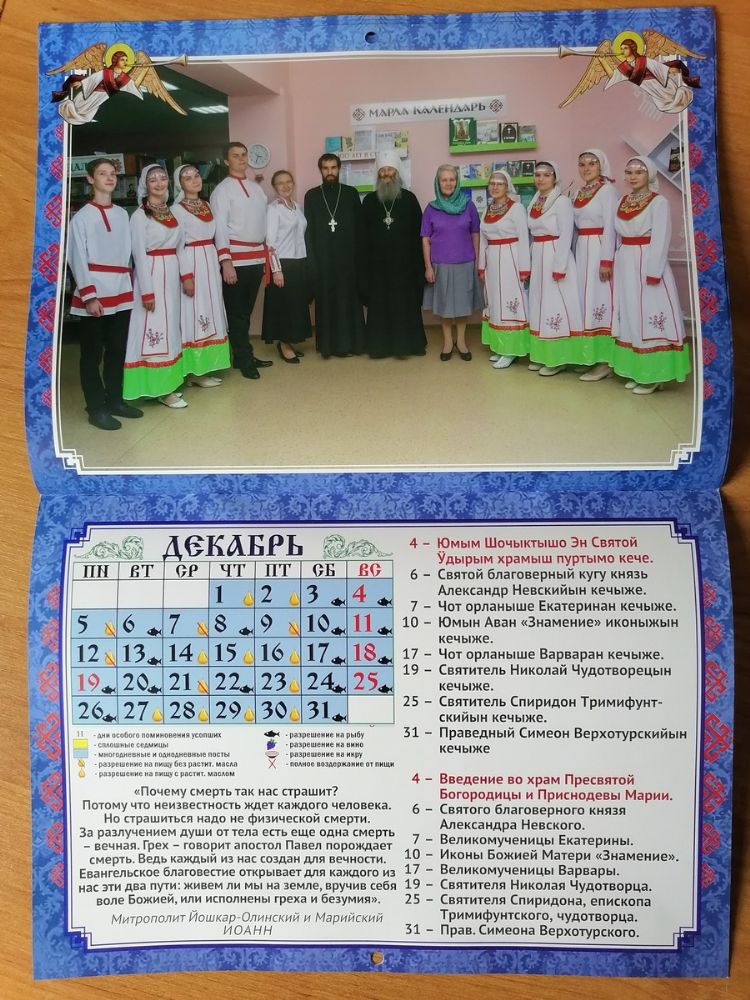 В преддверии Дня марийской письменности Марийская митрополия выпустила два православных настенных календаря на 2022 год. Это совместный проект Переводческой комиссии и Информационно-издательского отдела митрополии.