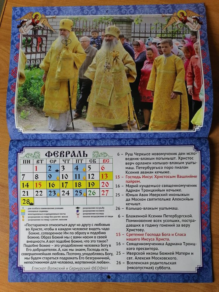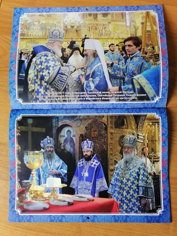 Второй календарь посвящен 5-летию образования Марийской митрополии, которое будет праздноваться в 2022 году. Календарь содержит избранные фотографии с историческими комментариями, а также назидательные изречения митрополита Йошкар-Олинского и Марийского Иоанна и епископа Волжского и Сернурского Феофана. В сборник вошли и пастырские наставления духовника Йошкар-Олинской епархии архимандрита Иоанна (Барсукова), настоятеля храма Рождества Христова Пресвятой Богородицы с. Сумки. Издание вышло на лугово-марийском и русском языках.