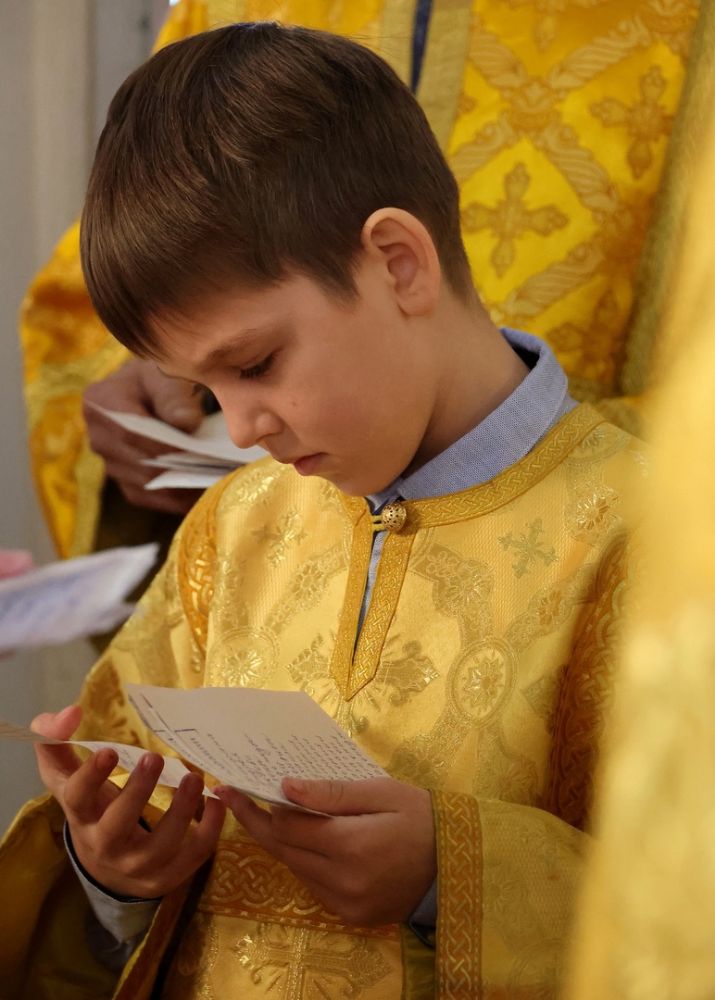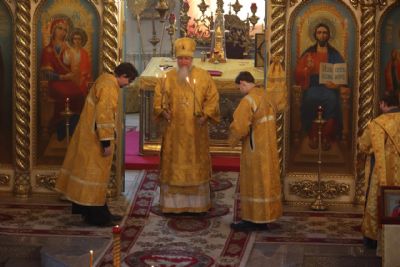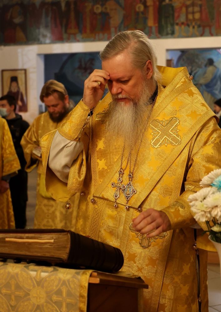 Его Преосвященству сослужили клирики собора, песнопения исполняли два хора: малый состав архиерейского и детско-юношеский.