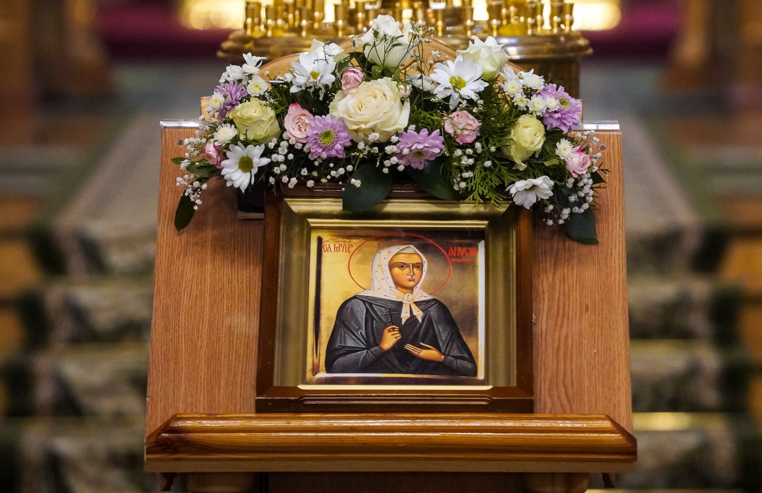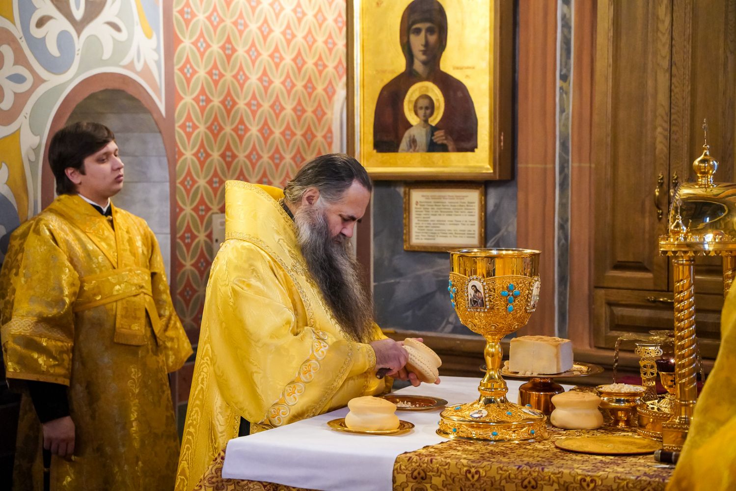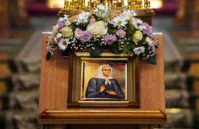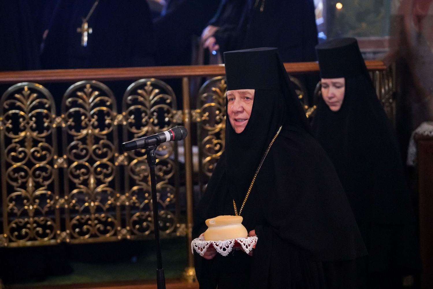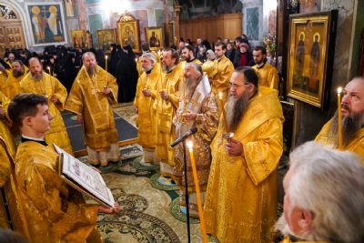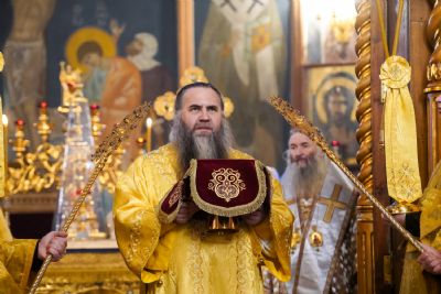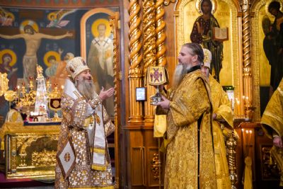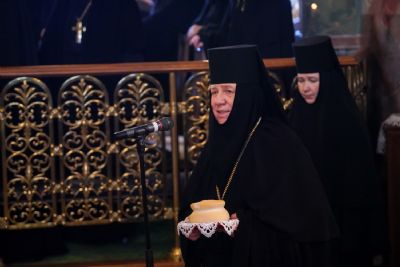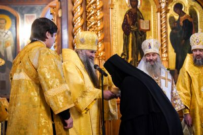 Игумения Сергия поблагодарила архипастырей за молитвы перед мощами батюшки Серафима, за совершенное богослужение и преподнесла им заздравные просфоры.