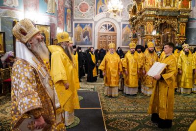 Правящему архиерею сослужили митрополит Йошкар-Олинский и Марийский Иоанн, митрополит Пензенский и Нижнеломовский Серафим, епископ Краснослободский и Темниковский Климент, викарий Нижегородской епархии епископ Балахнинский Илия, епископ Салаватский и Кумертауский Николай, епископ Ардатовский и Атяшевский Вениамин, епископ Канашский и Янтиковский Стефан, викарий Нижегородской епархии епископ Дальнеконстантиновский Филарет, епископ Выксунский и Павловский Варнава, епископ Сердобский и Спасский Митрофан, епископ Лысковский и Лукояновский Силуан, епископ Тольяттинский и Жигулевский Нестор, епископ Уржумский и Омутнинский Иоанн, епископ Волжский и Сернурский Феофан, епископ Бирский и Белорецкий Спиридон, епископ Сызранский и Шигонский Леонтий и клирики Нижегородской епархии.