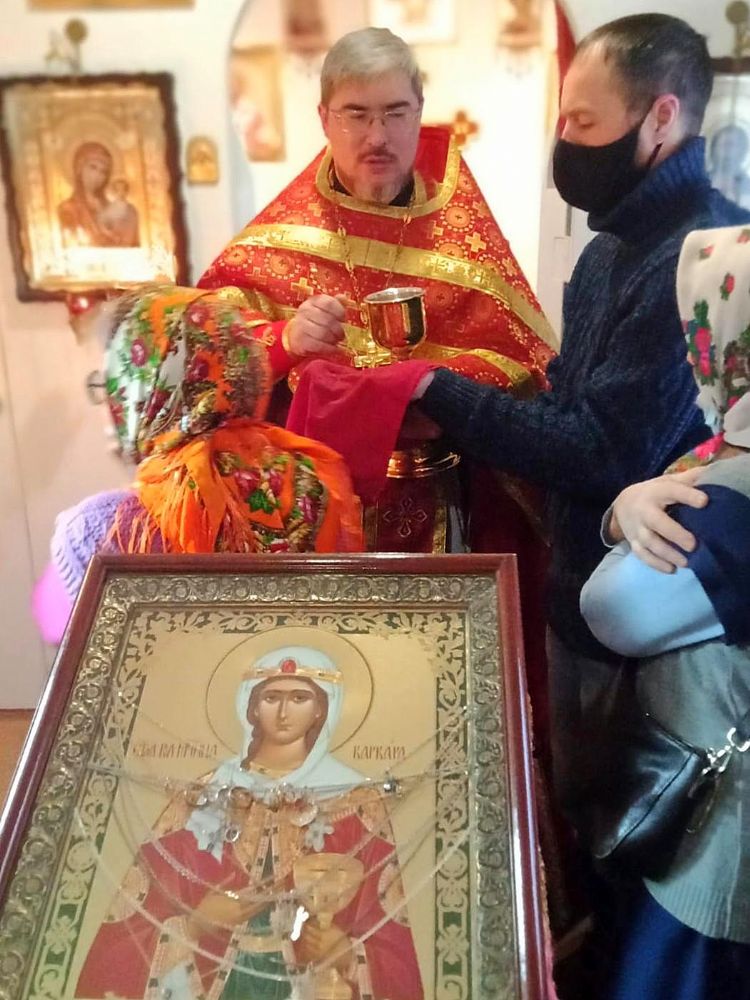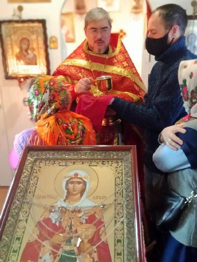 Прихожане радостно собрались помолиться великомученице Варваре, попросить Ее помощи в скорейшем завершении строительства храма, где идут сейчас внутренние работы. Многие причастились Святых Христовых Таин.