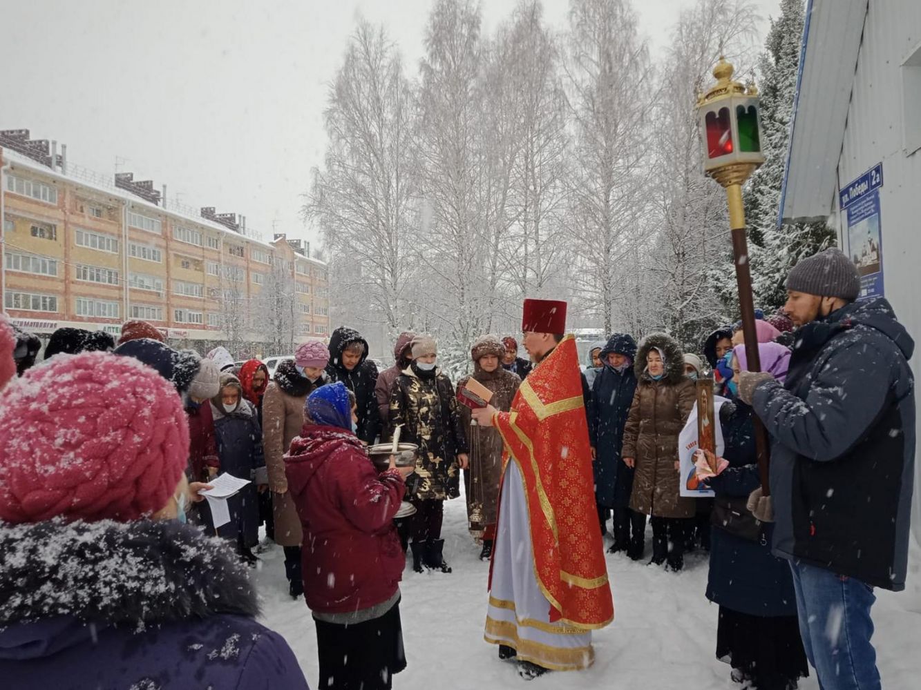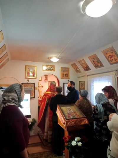 Божественную литургию в расположенной рядом молельном доме и всенощное бдение накануне возглавил настоятель храма, благочинный Медведевского церковного округа иерей Александр Козлов. Песнопения исполнял хор храма.