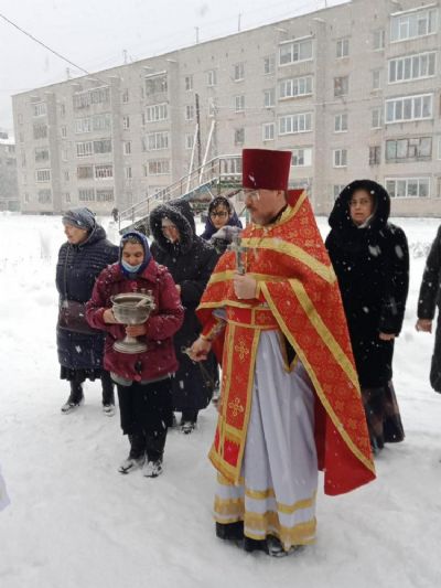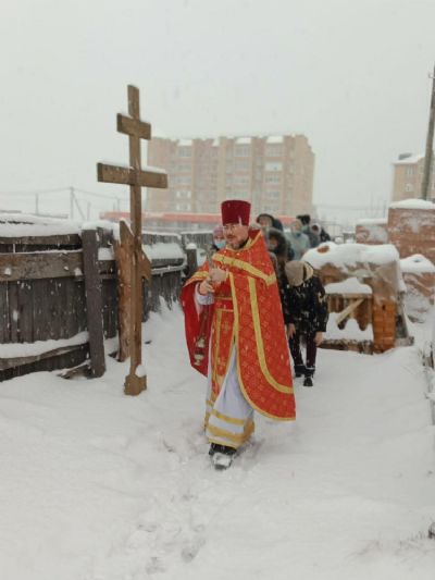 После Литургии вокруг храма прошел крестный ход со чтением Евангетия и кроплением святой водой.