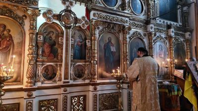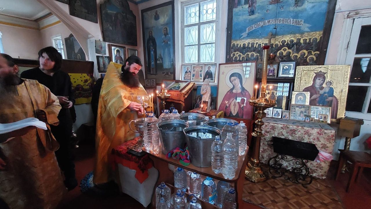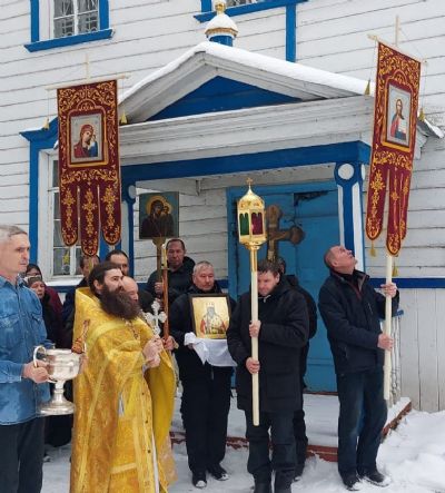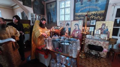 После Литургии был отслужен водосвятный молебен и прошел крестный ход вокруг храма со чтением Евангелия и кроплением святой водой.