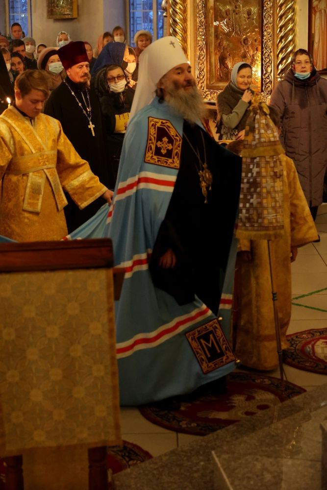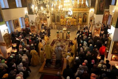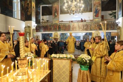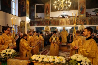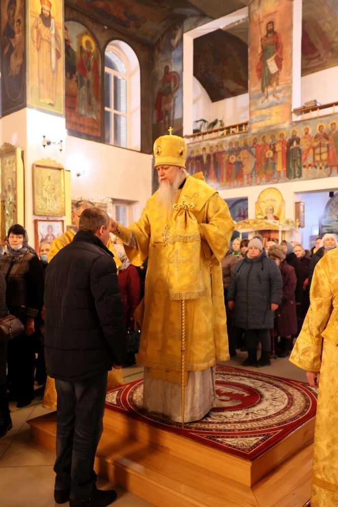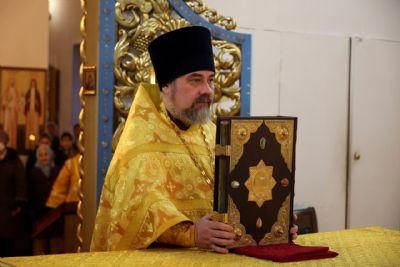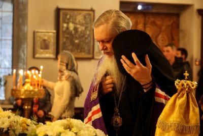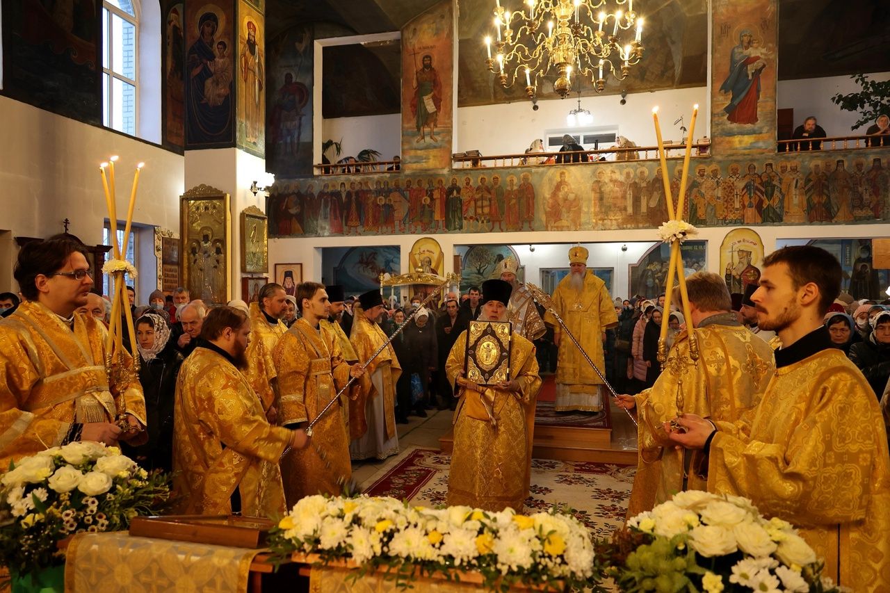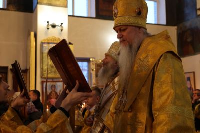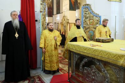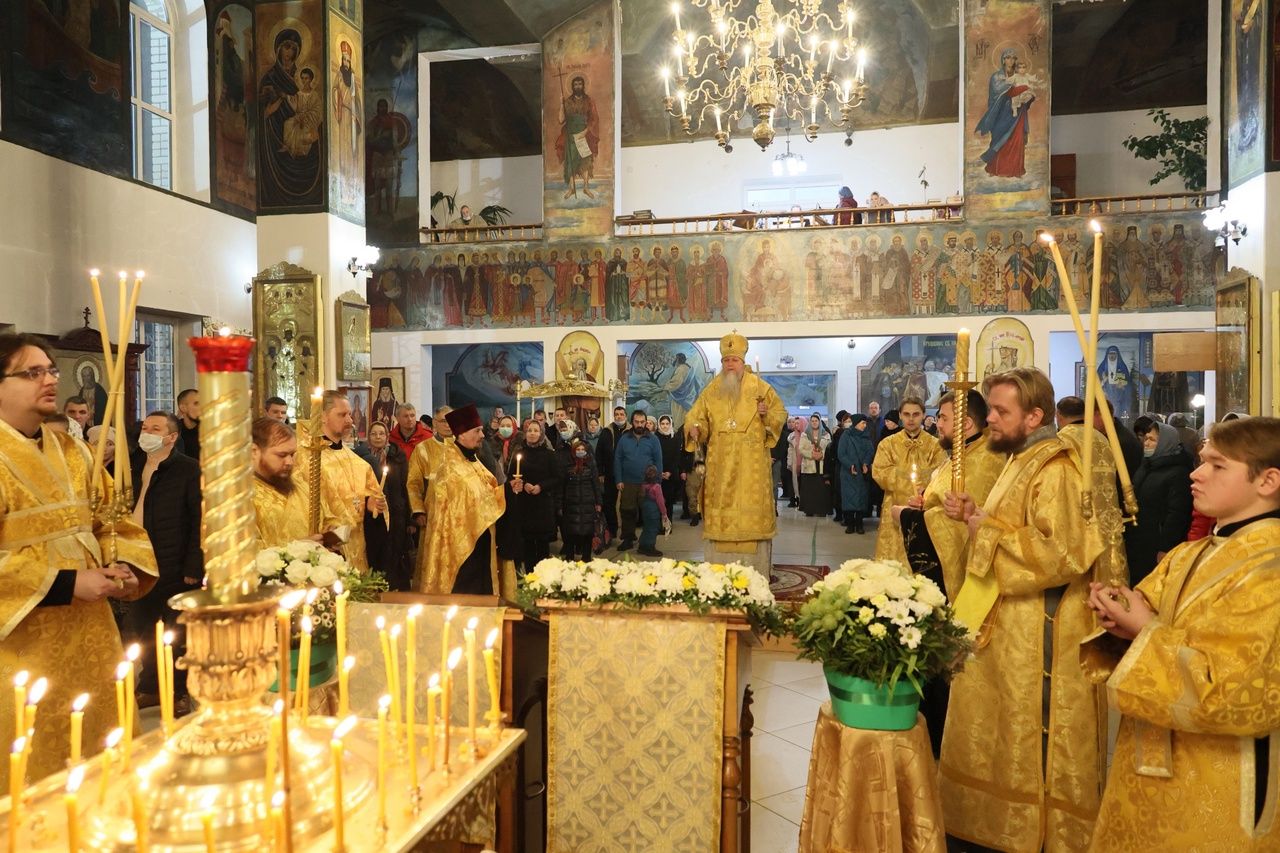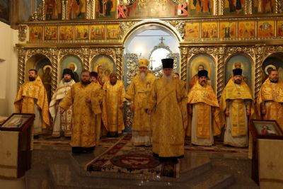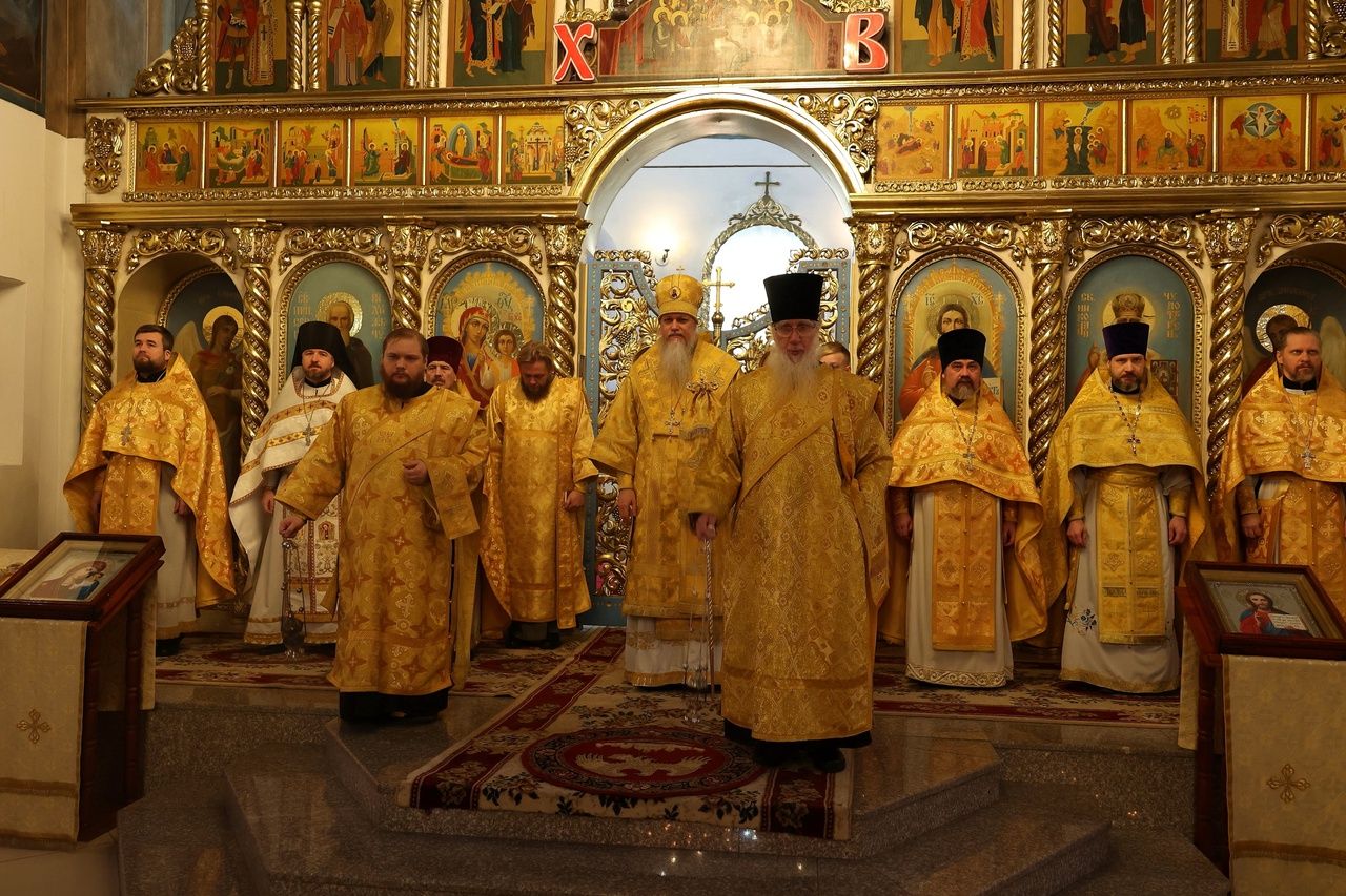 Накануне епископ Феофан возглавил в кафедральном соборе праздничное всенощное бдение в сослужении духовенства собора.