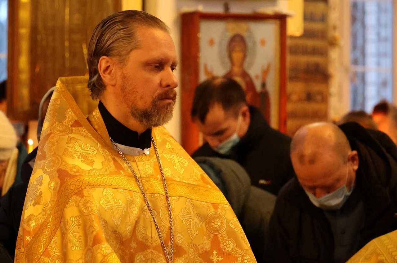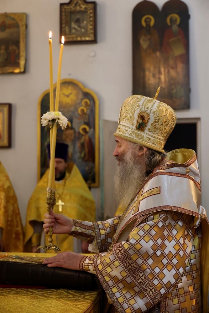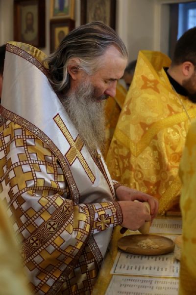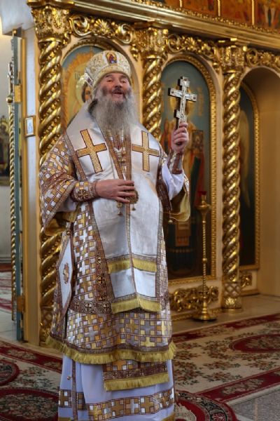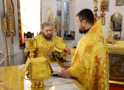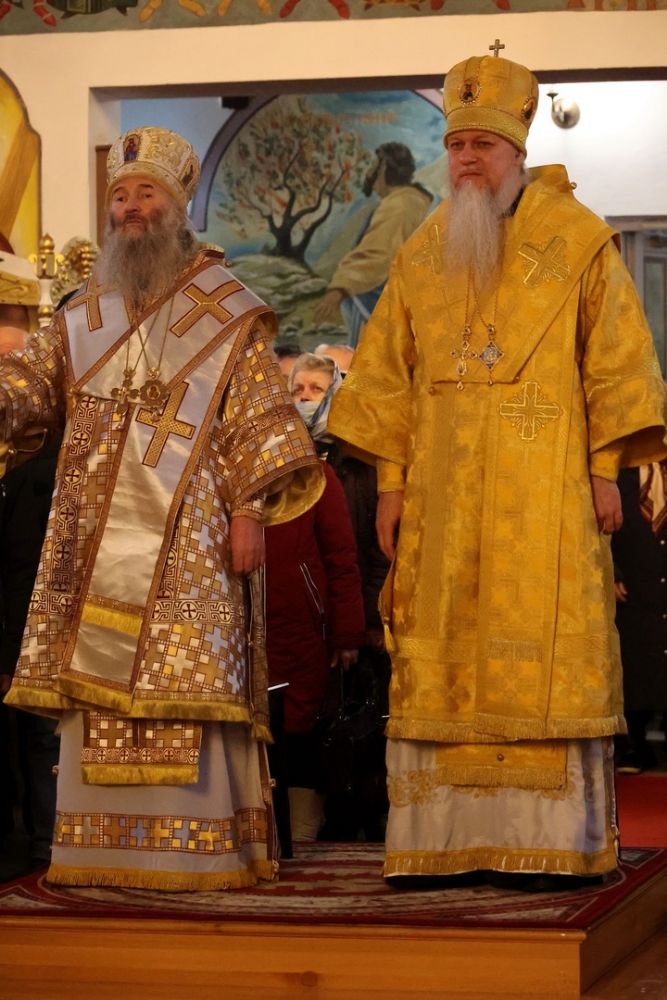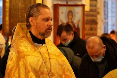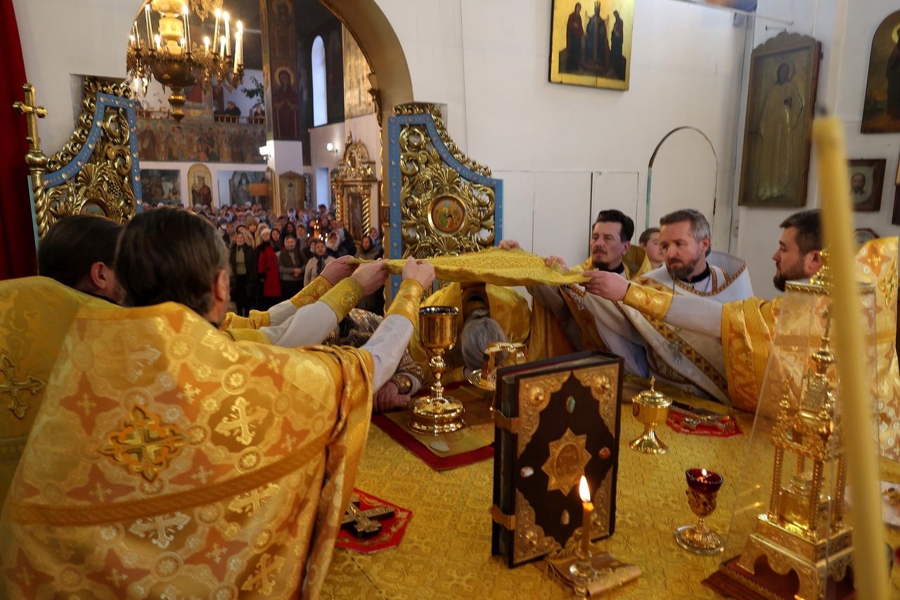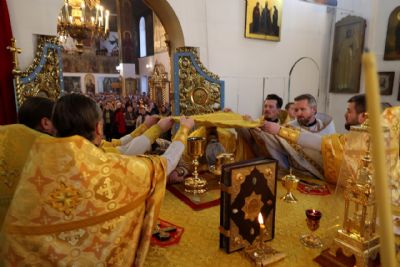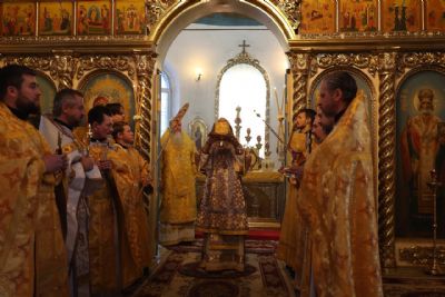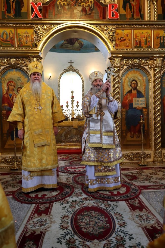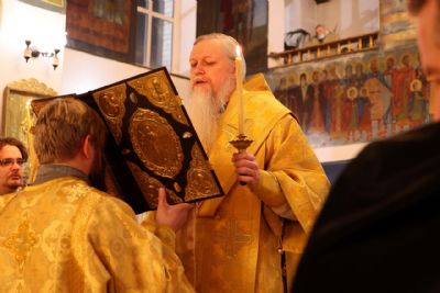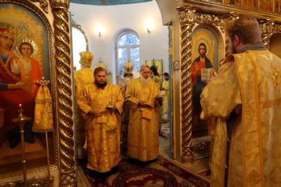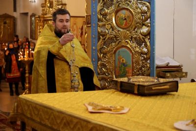 Накануне епископ Феофан возглавил в кафедральном соборе праздничное всенощное бдение в сослужении духовенства собора.