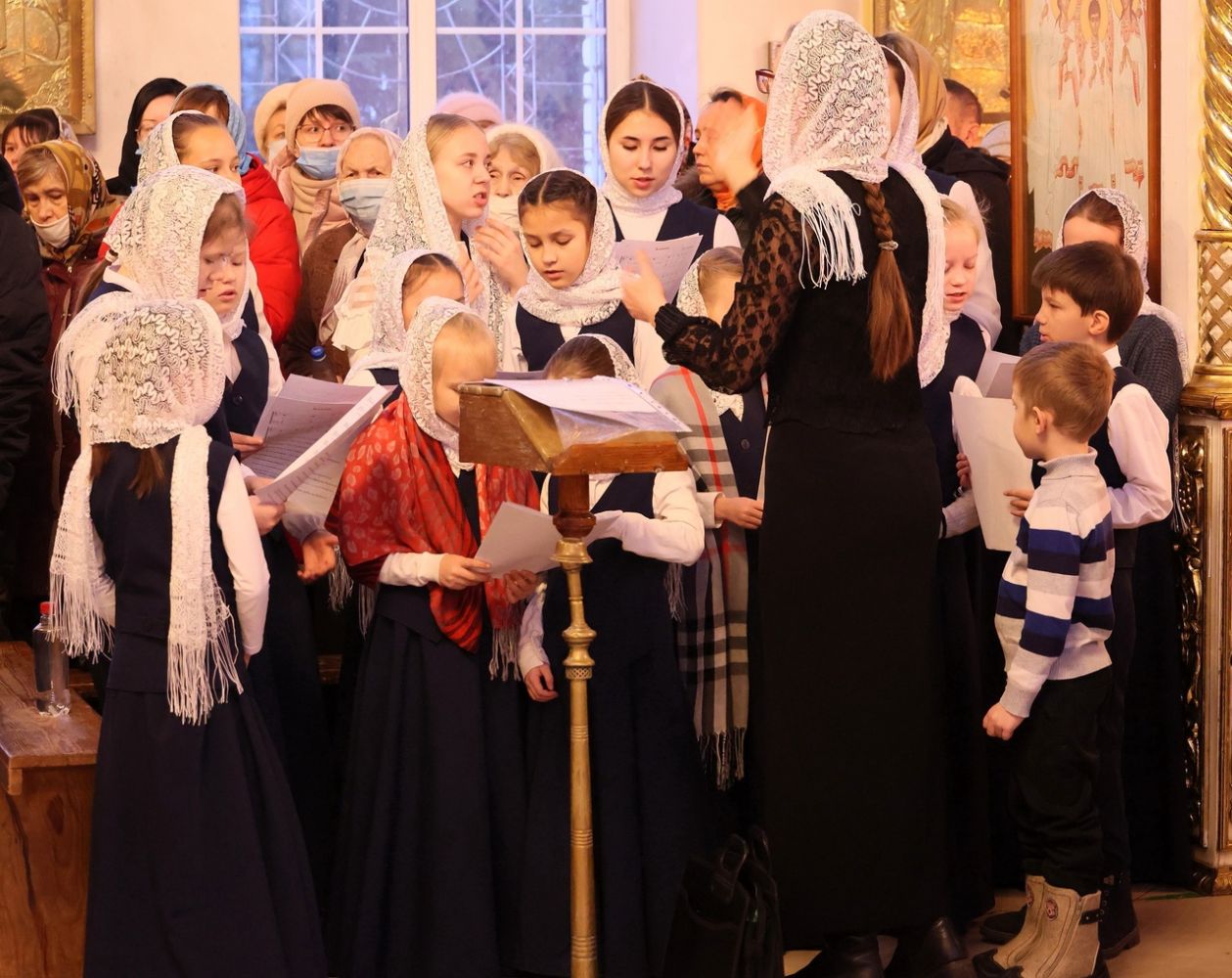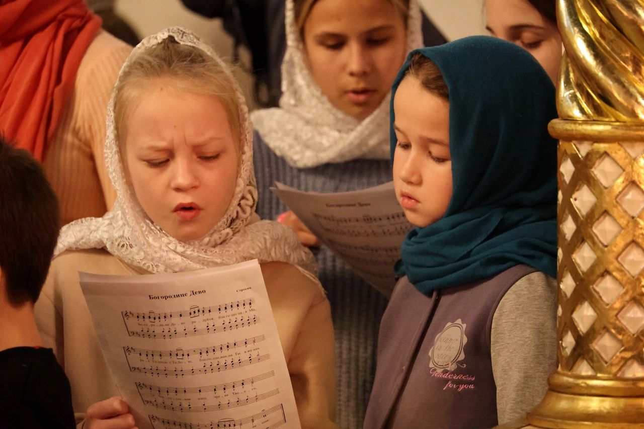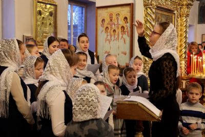 Песнопения исполняли два хора: архиерейский (регент Любовь Михеева) и детско-юношеский (регент Мария Захарова).