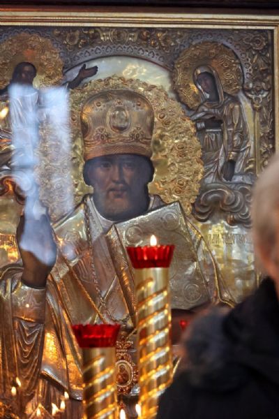Святая Русь – это место, где святитель Николай почивает душою своею. Народы Руси возлюбили святителя Николая еще до крещения её. Первый храм во граде Киеве, посвященный ему, был свидетельством того, что еще языческий мир обращался к святителю Николаю во время путешествий своих. А когда в купель крещения погрузилась языческая Русь, а восстала из неё Святая Русь, святитель Николай в русском народе обрел себе не только верных ему почитателей, но и тех, которые были ему благодарны за многие чудеса. В благодарность святителю сооружали монастыри, храмы. И в каждой семье есть образ святителя Николая.
