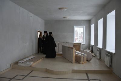 После богослужения владыка Феофан показал митрополиту Иоанну здание строящегося в Волжске здания епархиального управления, где сейчас ведутся внутренние отделочные работы.