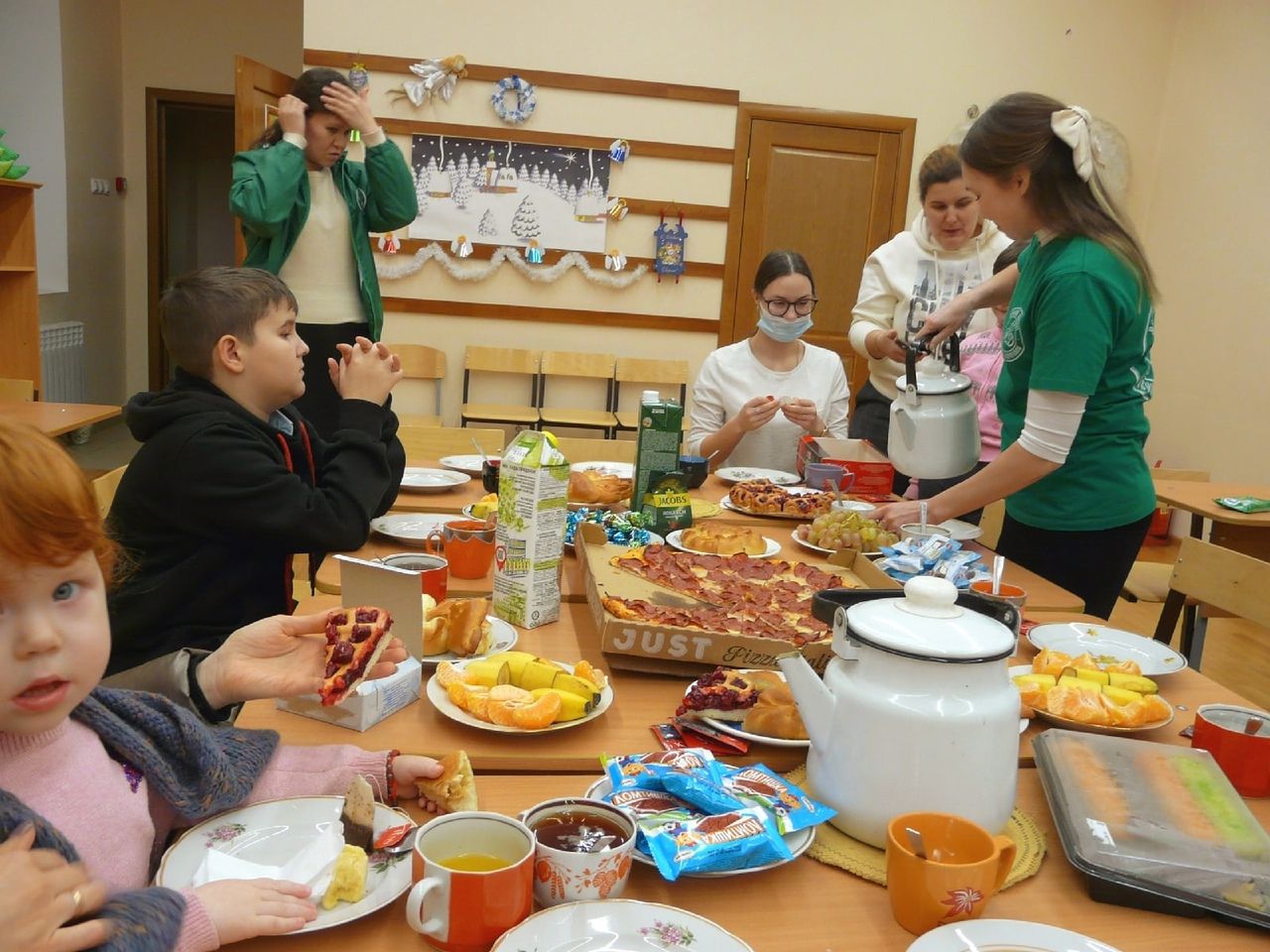 После мастер-класса все вместе собрались за чайным столом, тепло пообщались. Добровольцы узнали о том, с какими ежедневными трудностями приходится сталкиваться семьям с особенными детьми. И решили встречаться с ними почаще и по возможности помогать.