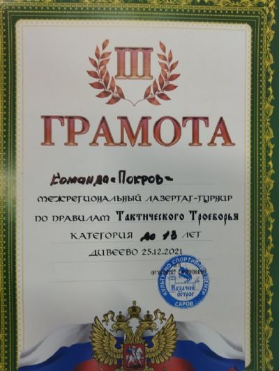 25 декабря, в день памяти святителя Спиридона Тримифунтского, кадеты казачьего военно-патриотического клуба «Клинок», духовно окормляющиеся на Покровском приходе села Эмеково, приняли участие в лазертаг-турнире по тактическому троеборью, который прошёл в с. Дивеево Нижегородской области.