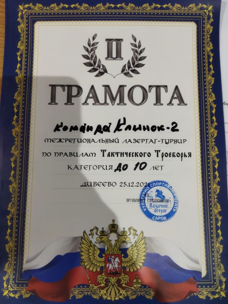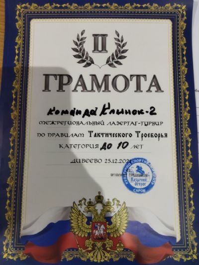Команда «Клинок-2» заняла второе место в возрастной категории до 10 лет. В составе команды: Илья Семёнов, Макар Иванов, Илья Браслетов и Ярослав Колесников.