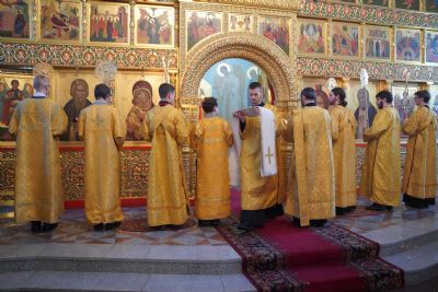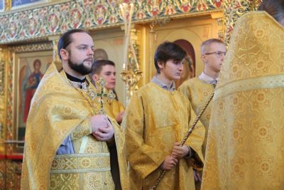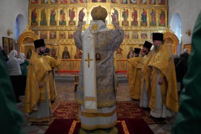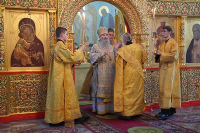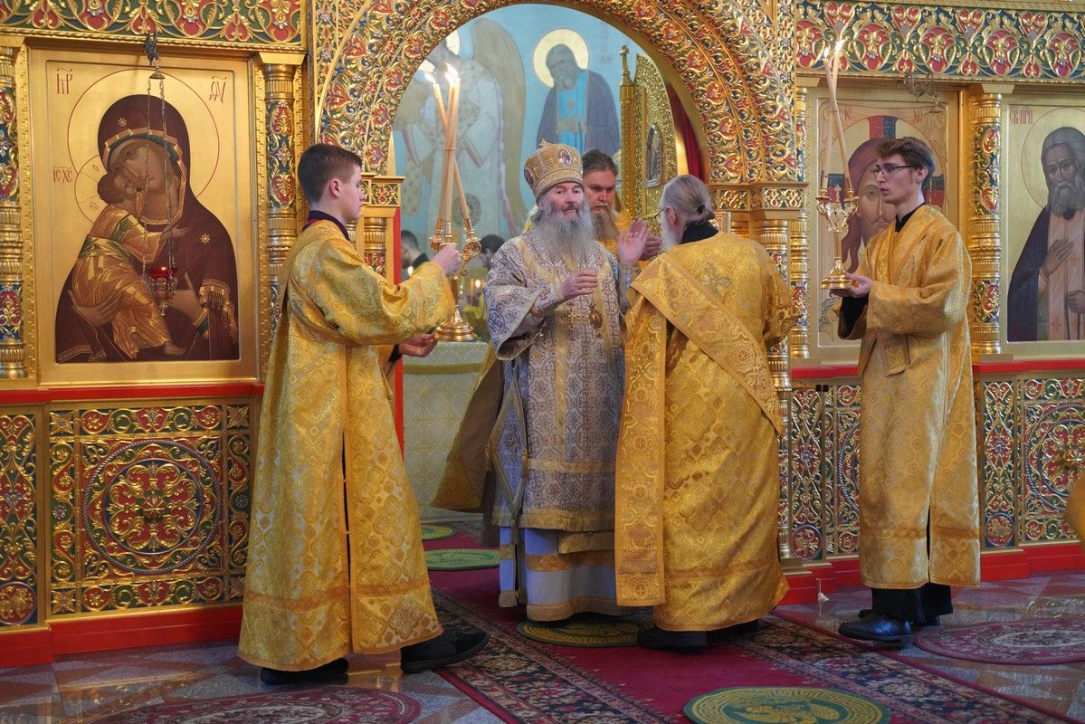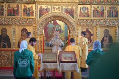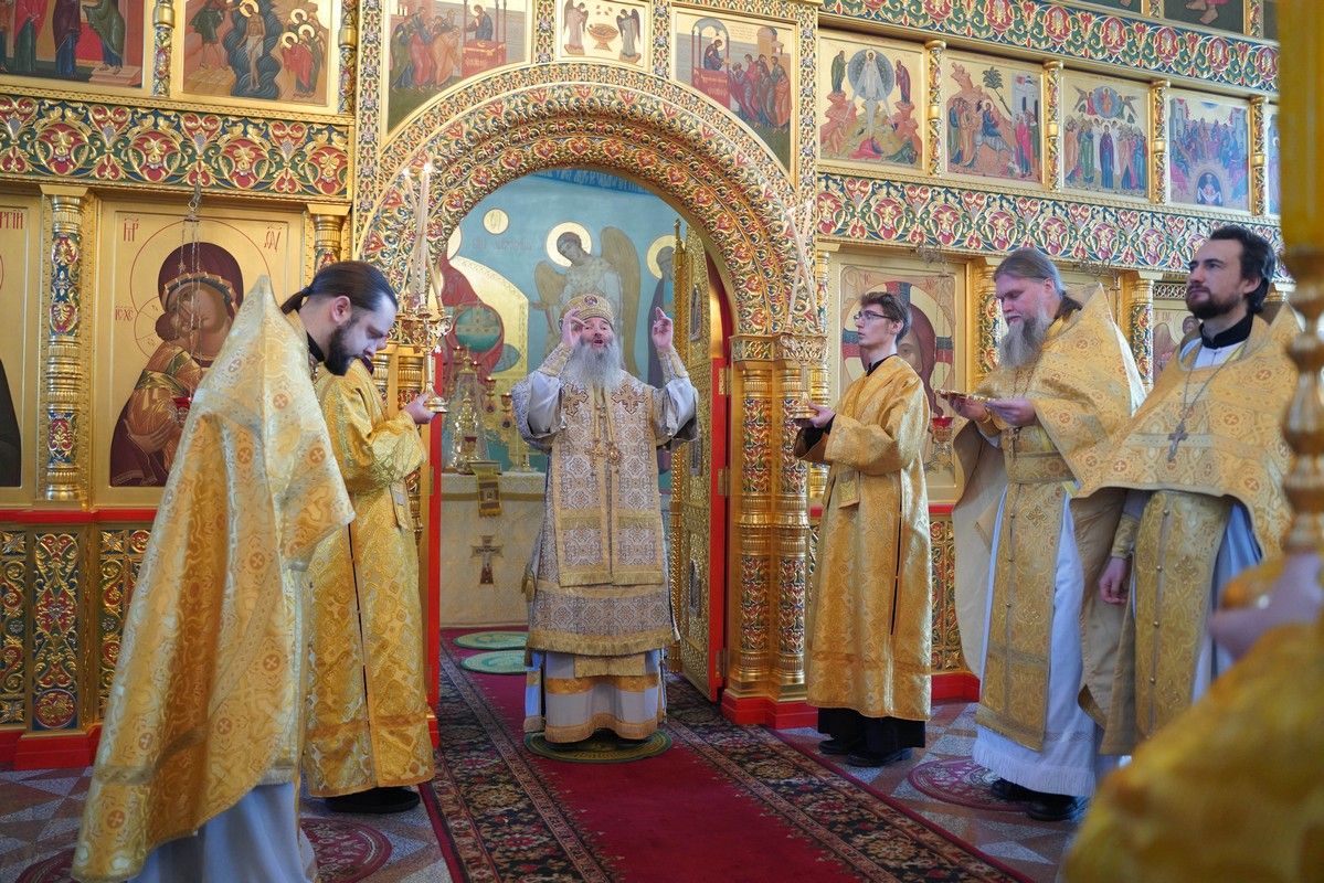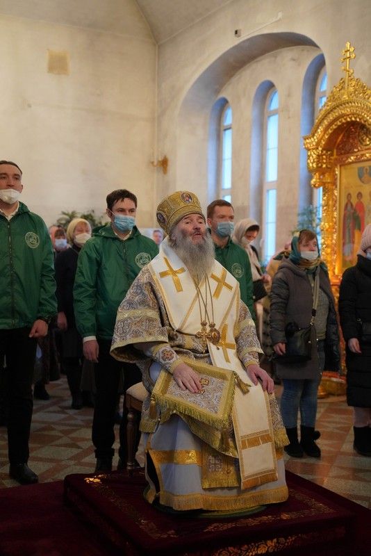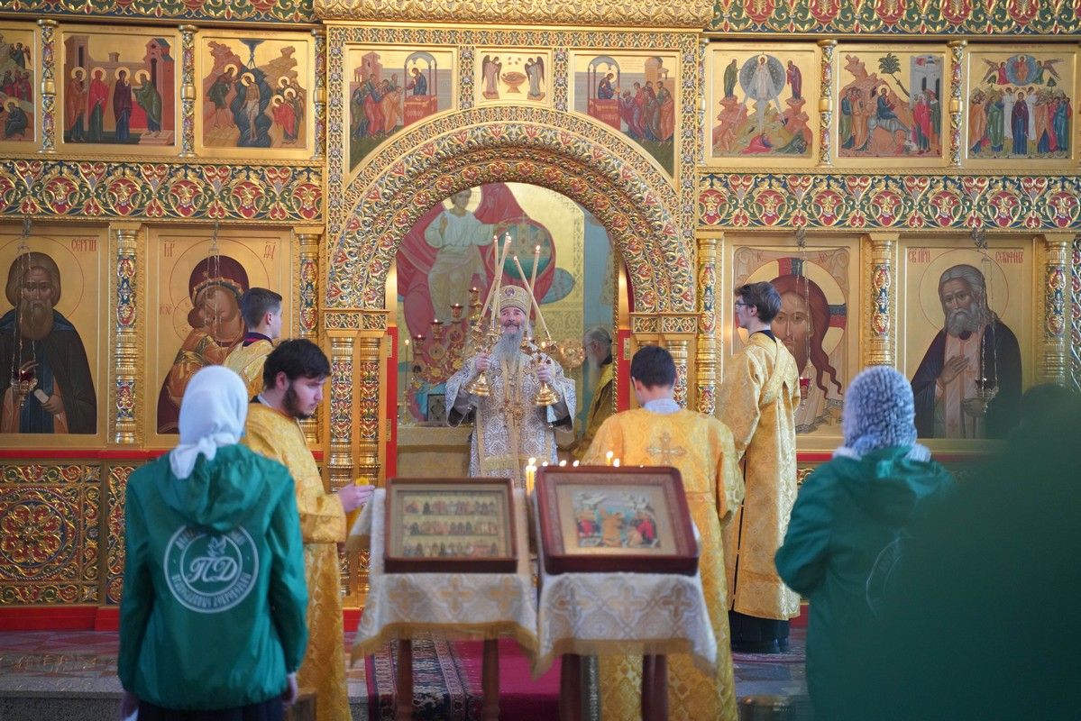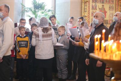 Его Высокопреосвященству сослужили настоятель храма протоиерей Александр Бачурин, клирики храма иерей Виктор Умрихин, иерей Николай Бабич и диакон Алексий Тарасов, а также протодиакон Михаил Козловский. Песнопения исполнял хор храма под управлением Елены Умрихиной и детский хор воскресной школы «Радость моя» под руководством регента Дарии Кудряшовой.