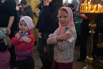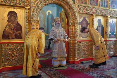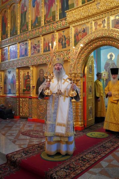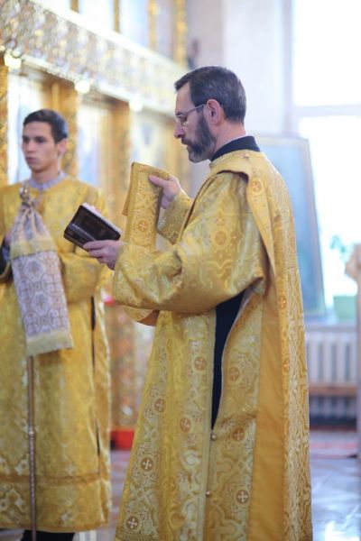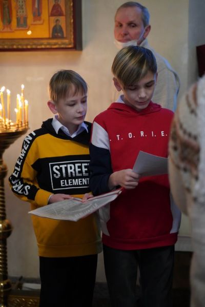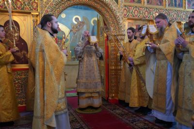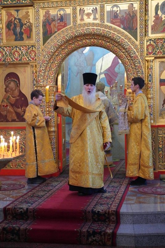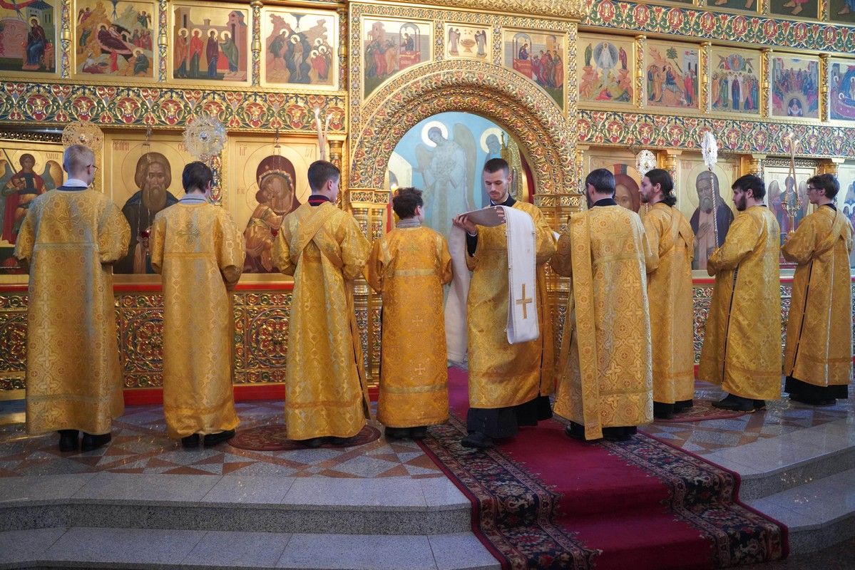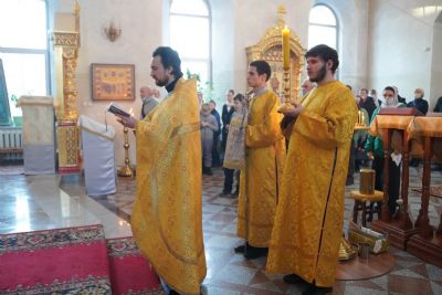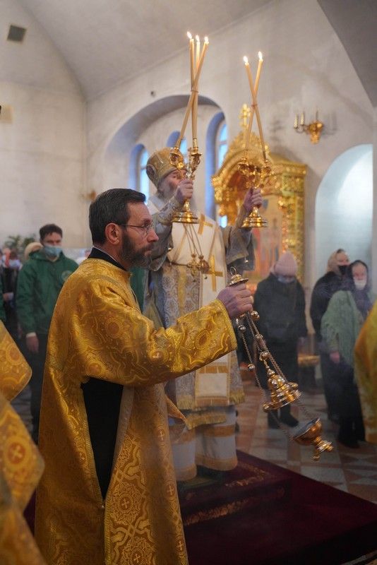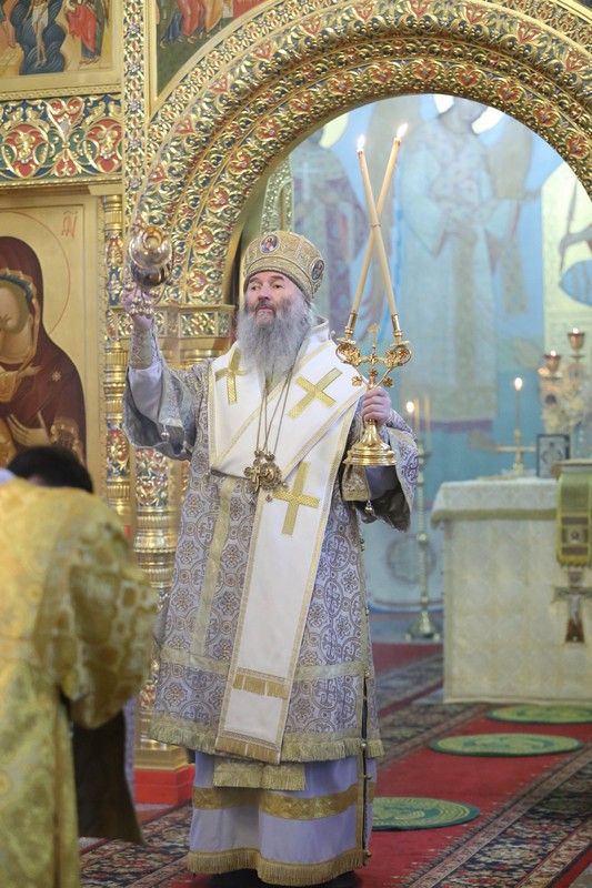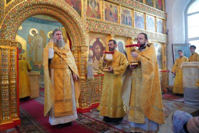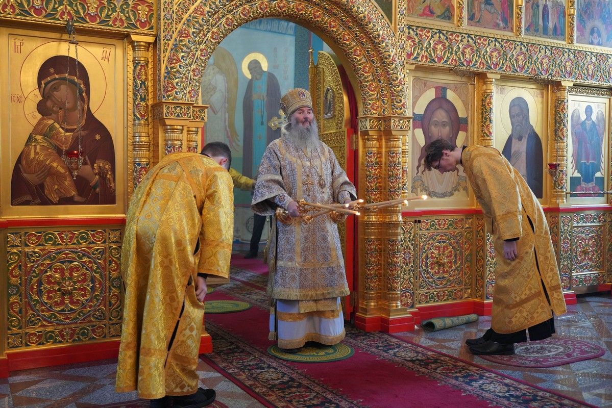 Его Высокопреосвященству сослужили настоятель храма протоиерей Александр Бачурин, клирики храма иерей Виктор Умрихин, иерей Николай Бабич и диакон Алексий Тарасов, а также протодиакон Михаил Козловский. Песнопения исполнял хор храма под управлением Елены Умрихиной и детский хор воскресной школы «Радость моя» под руководством регента Дарии Кудряшовой.