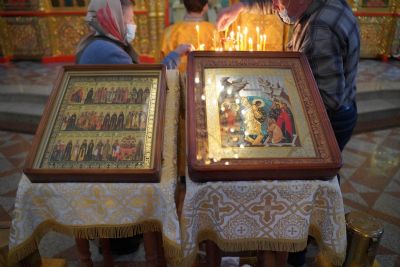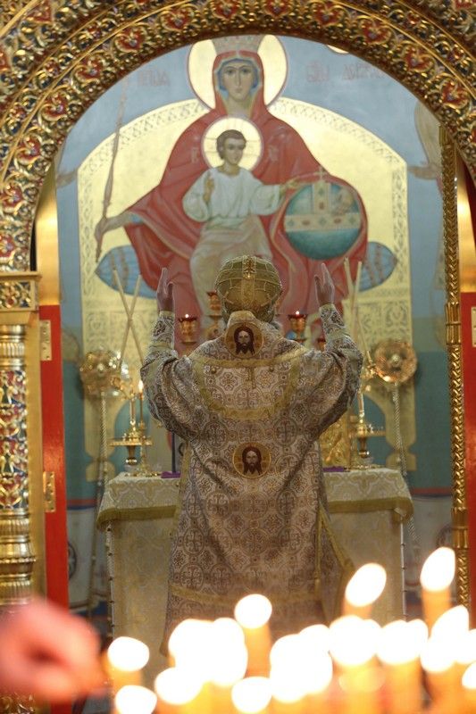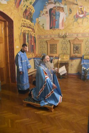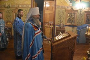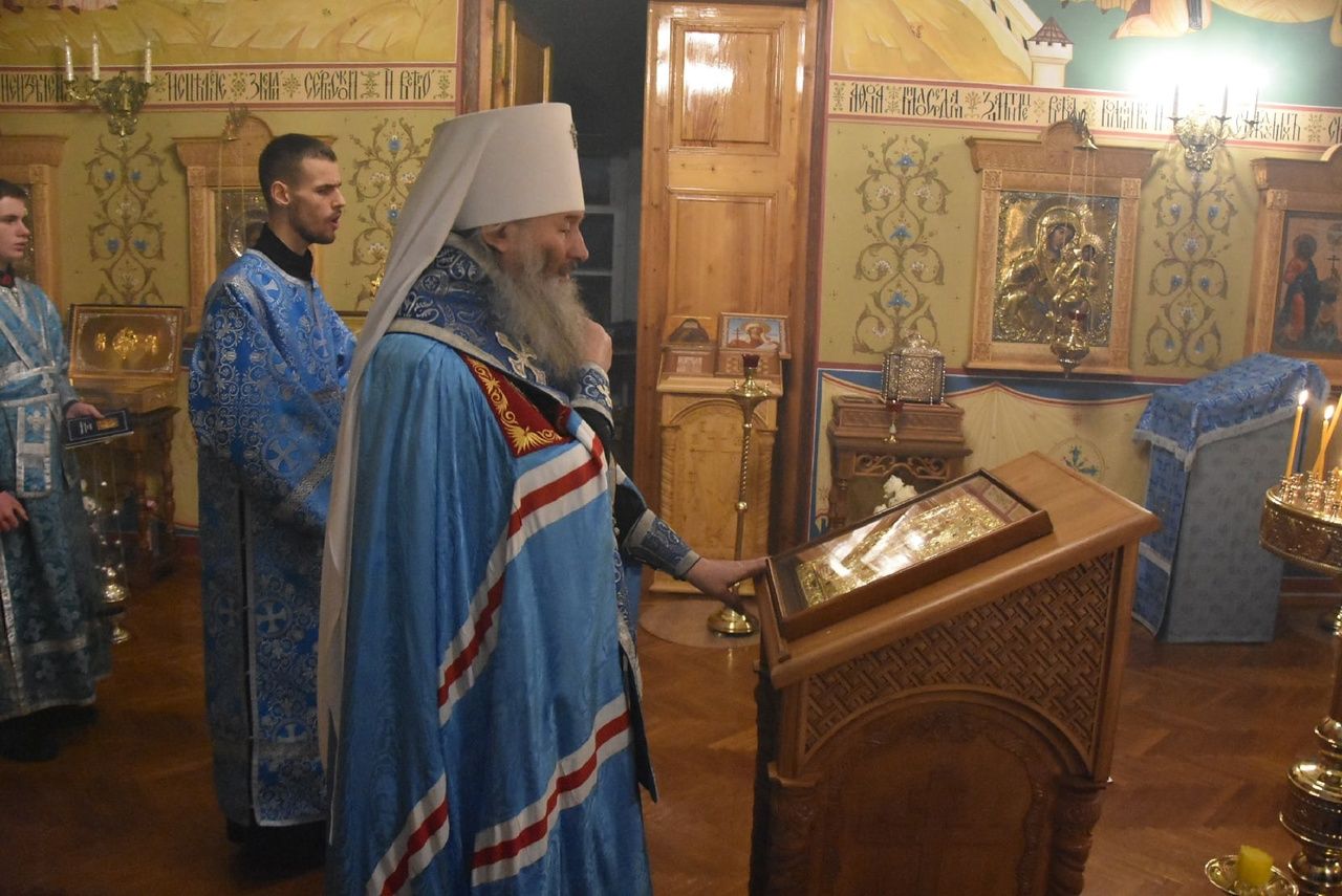 Вечером воскресного дня митрополит Иоанн совершил богослужение с пением акафиста Пресвятой Богородице перед Ее иконой «Троеручица» в домовом храме епархиального управления. Владыке сослужил протодиакон Михаил Козловский. Песнопения исполнял хор «Благовест» под управлением Татьяны Черновой.