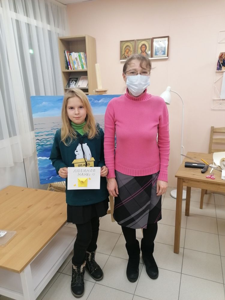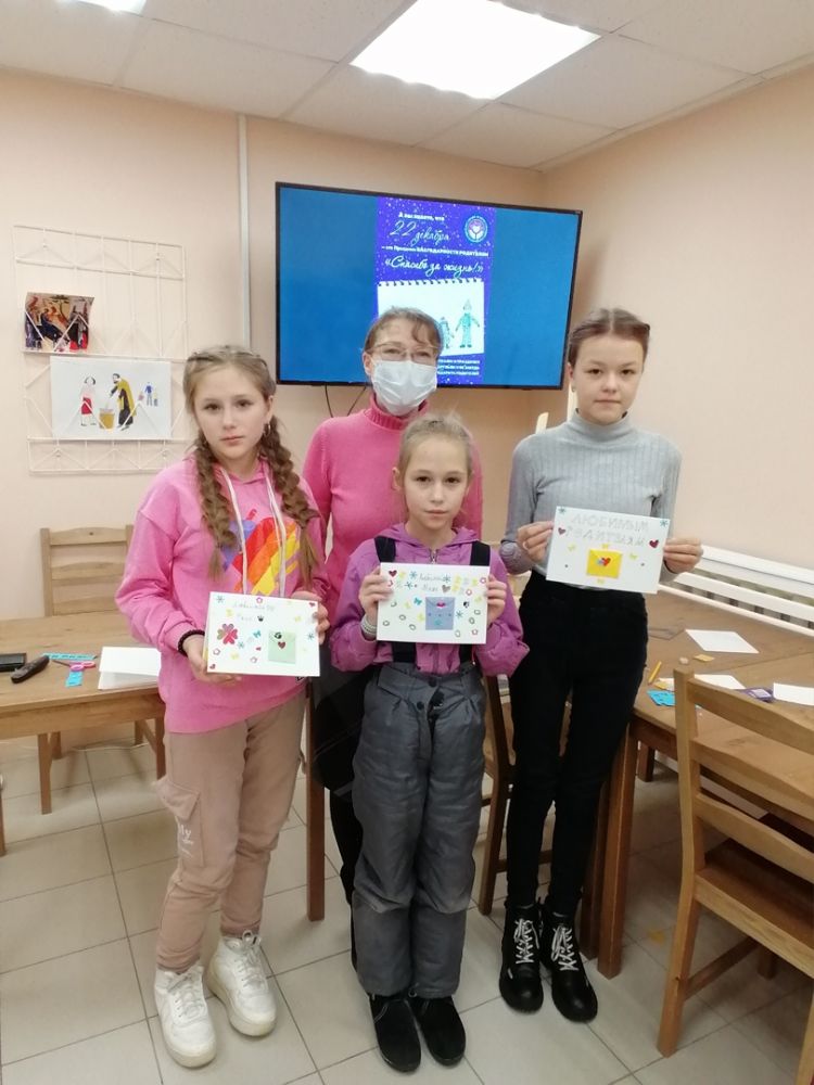 Девочки из подопечных семей под руководством педагога Детской художественной школы №1 г. Йошкар-Олы Марии Клюкиной изготовили в подарок своим родителям красочные открытки с конвертиками, в которые вложили записки со словами благодарности и любви.
