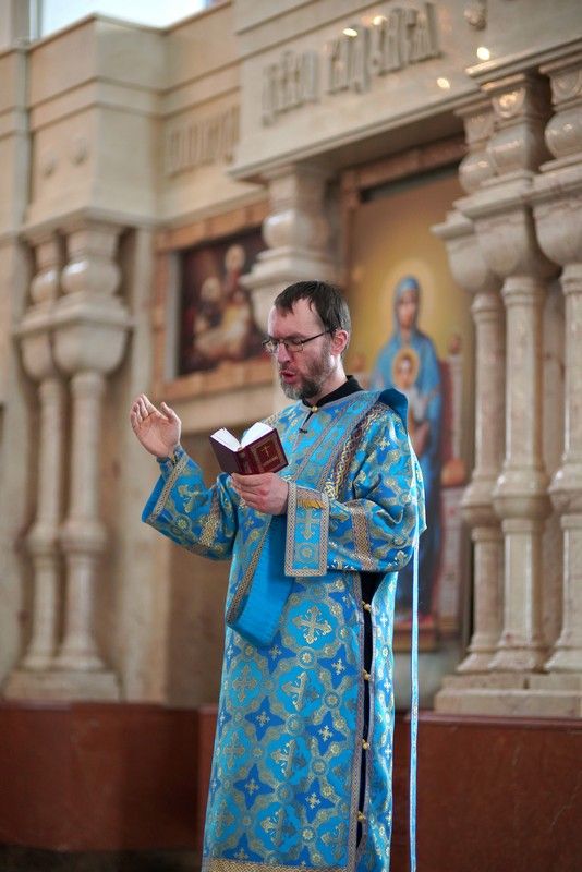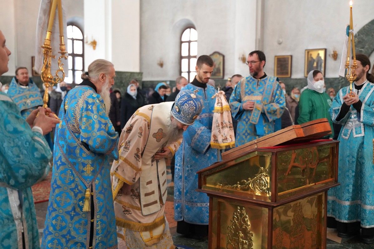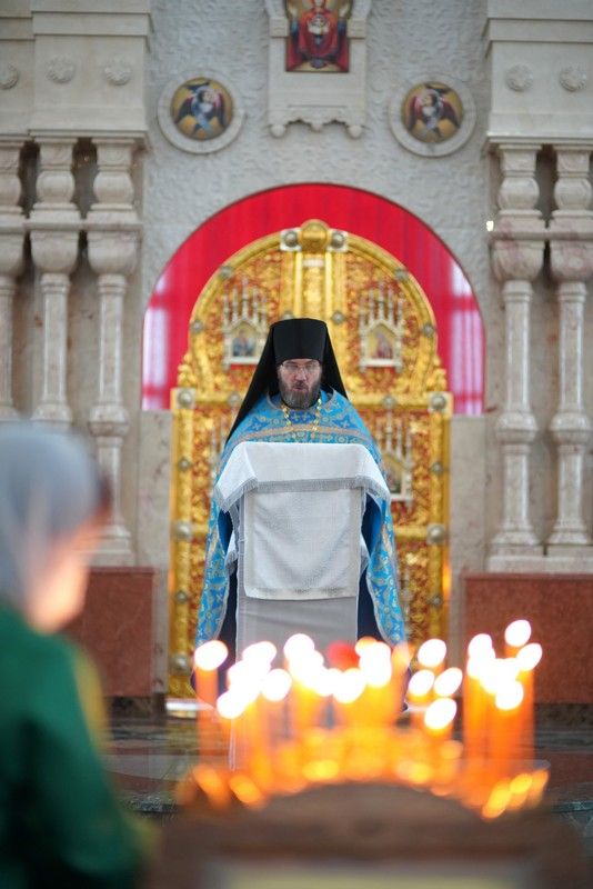 Архипастырю сослужили секретарь Йошкар-Олинского епархиального управления иеромонах Серафим (Пасанаев), ключарь кафедрального собора протоиерей Сергий Поглазов, клирики собора и протодиакон Михаил Козловский. Песнопения исполнял хор «Благовест» под управлением регента Татьяны Черновой.