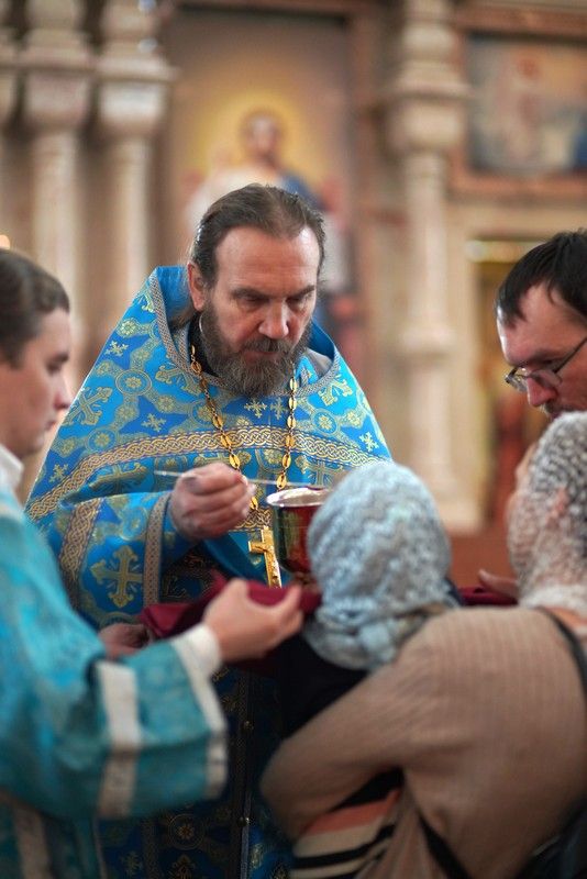 А как изобильно изливается милость Господня на нас в храме! Благоговейно прикладываясь к мощам, иконам, человек испытывает радость, умиротворение и спокойствие. А как радуется сердце на богослужении, особенно во время Божественной литургии, когда Господь Сам выходит, во время изнесения Чаши, и мы кланяемся Ему. И не только на руках мы Господа держим, но Он Сам в таинстве Причастия воцаряется в нашем сердце, как на престоле.