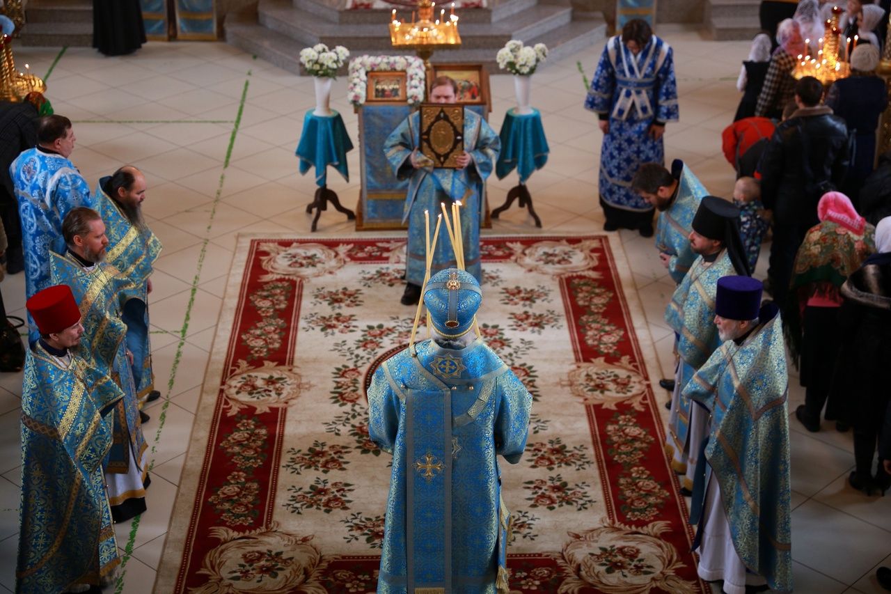 20 февраля, в Неделю о блудном сыне, епископ Волжский и Сернурский Феофан возглавил Божественную литургию в Никольском кафедральном соборе г. Волжска.