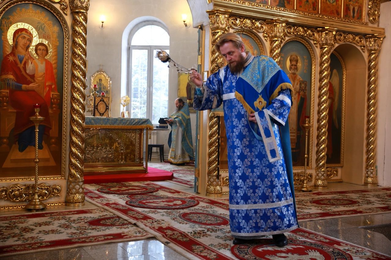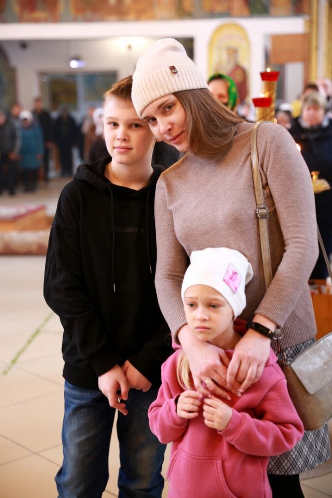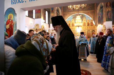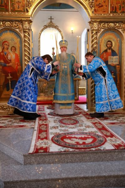 Его Преосвященству сослужили клирики собора, песнопения исполняли два хора –архиерейский и детско-юношеский.