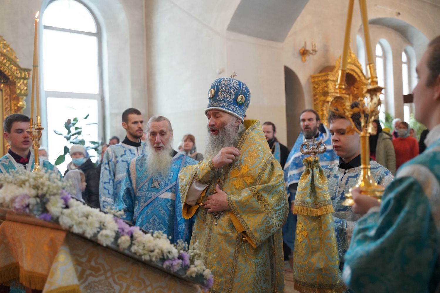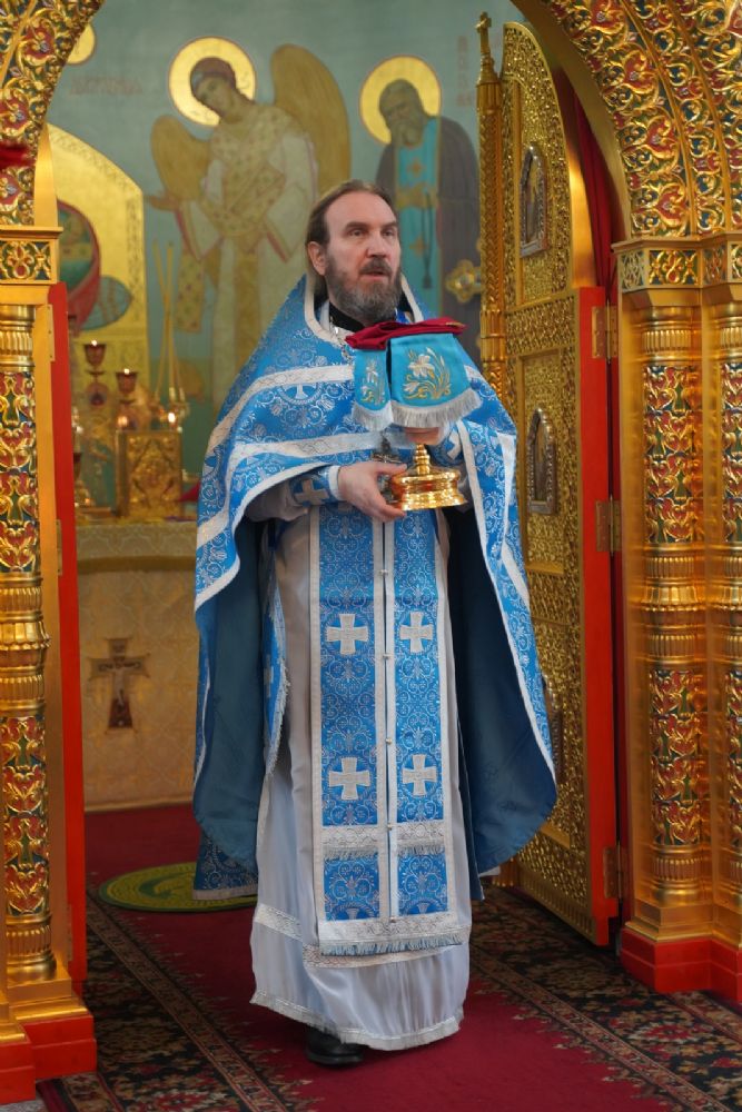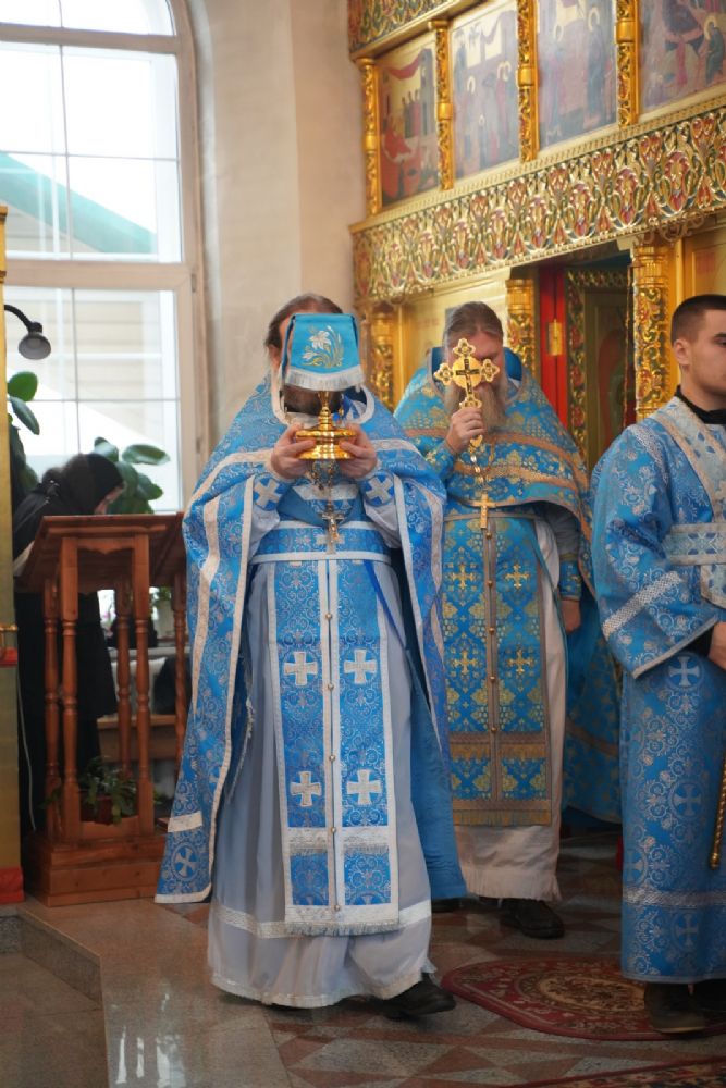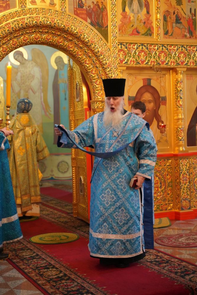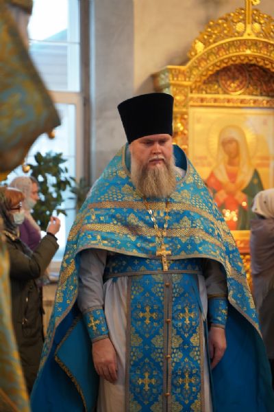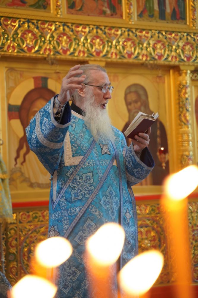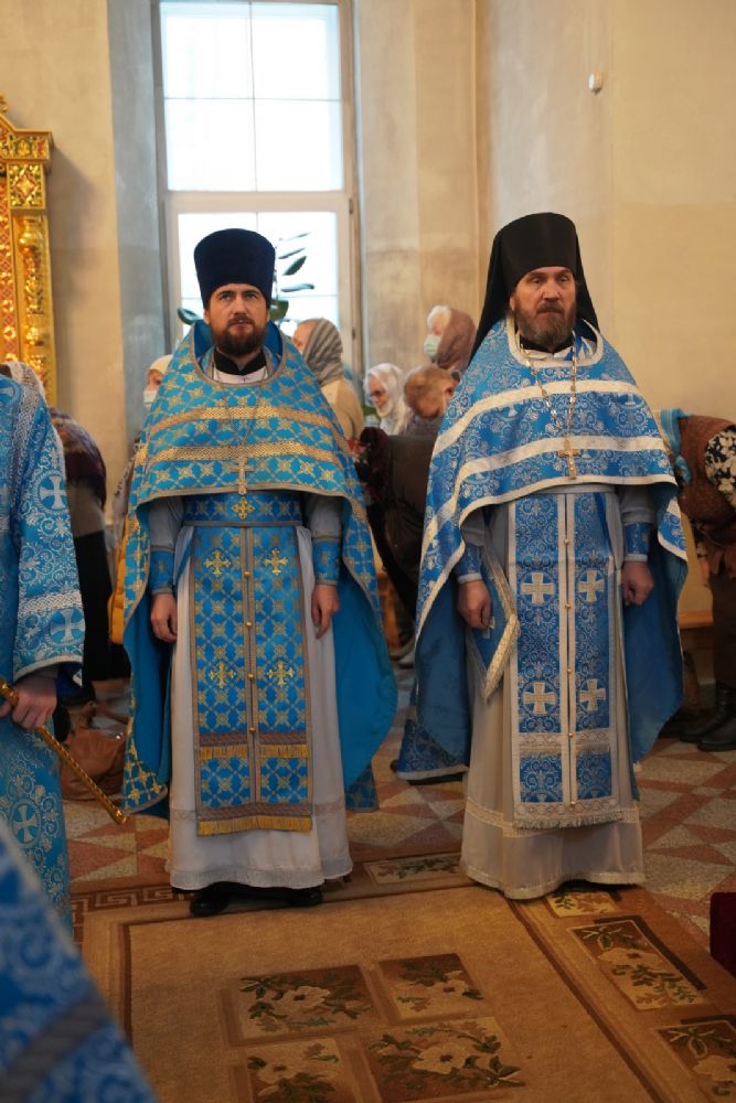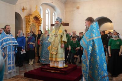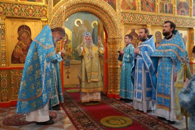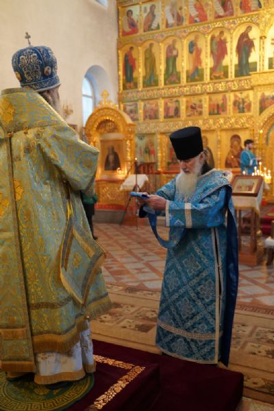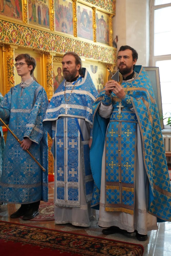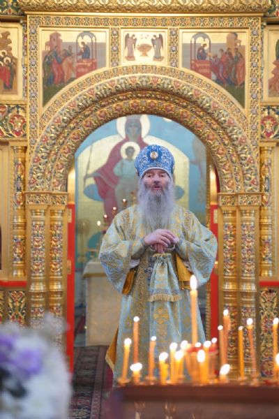 Его Высокопреосвященству сослужили секретарь Йошкар-Олинского епархиального управления иеромонах Серафим (Пасанаев), настоятель храма протоиерей Александр Бачурин, клирики храма и протодиакон Михаил Козловский. Пел хор храма под управлением регента Елены Умрихиной.