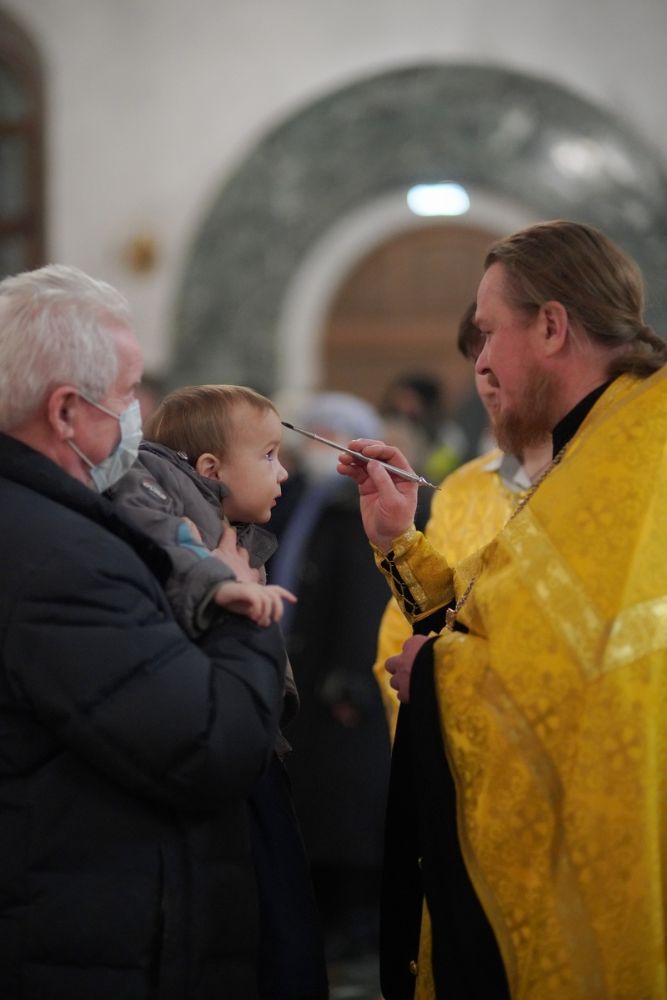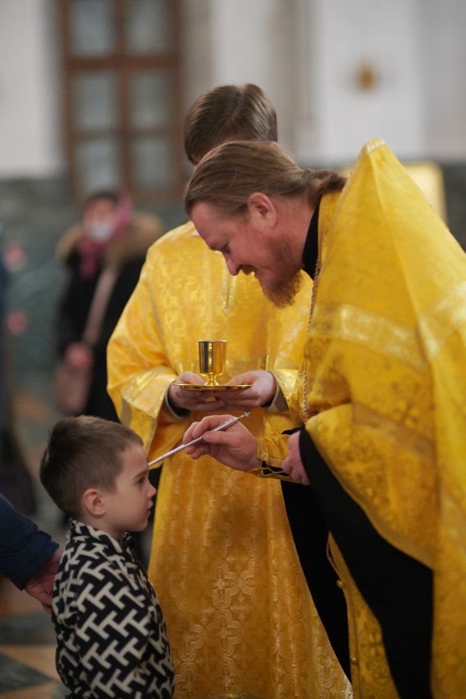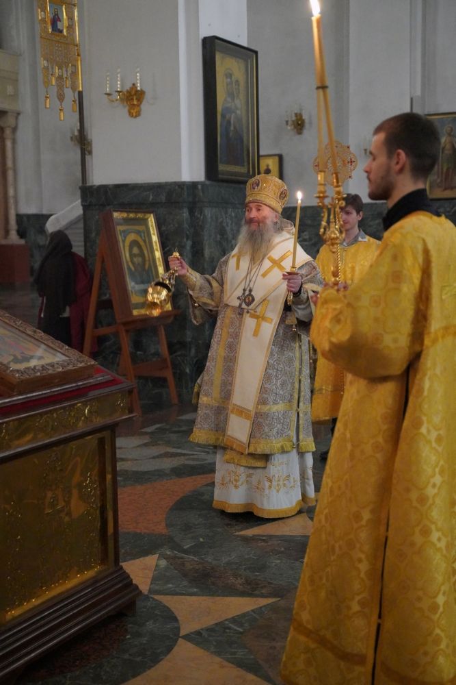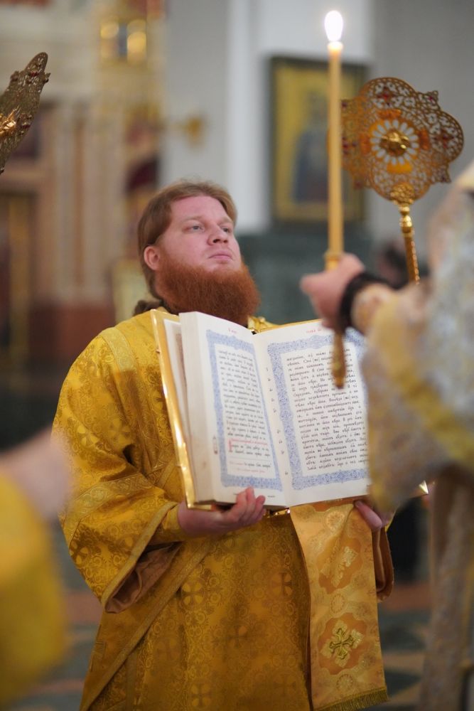 Владыке сослужили ключарь кафедрального собора протоиерей Сергий Поглазов, клирики собора и протодиакон Михаил Козловский. Песнопения исполняли старший и младший составы детско-юношеского хора «Благовест» под управлением регентов Татьяны Черновой, Иулианы Алексеевой и Анны Поглазовой.