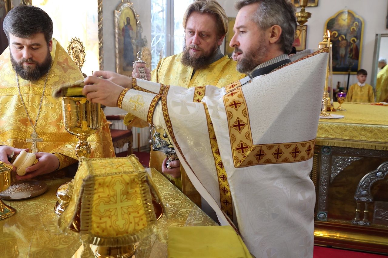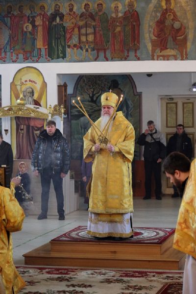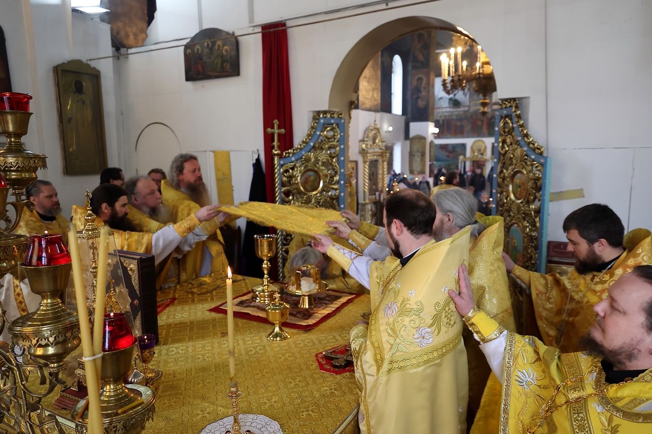 28 февраля, в понедельник Сырной седмицы, день памяти апостола от 70-ти Онисима, епископ Волжский и Сернурский Феофан совершил Божественную литургию в Никольском кафедральном соборе г. Волжска.