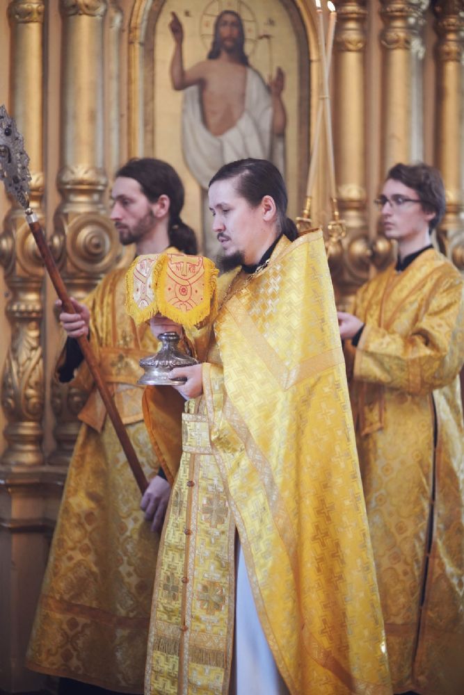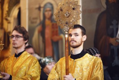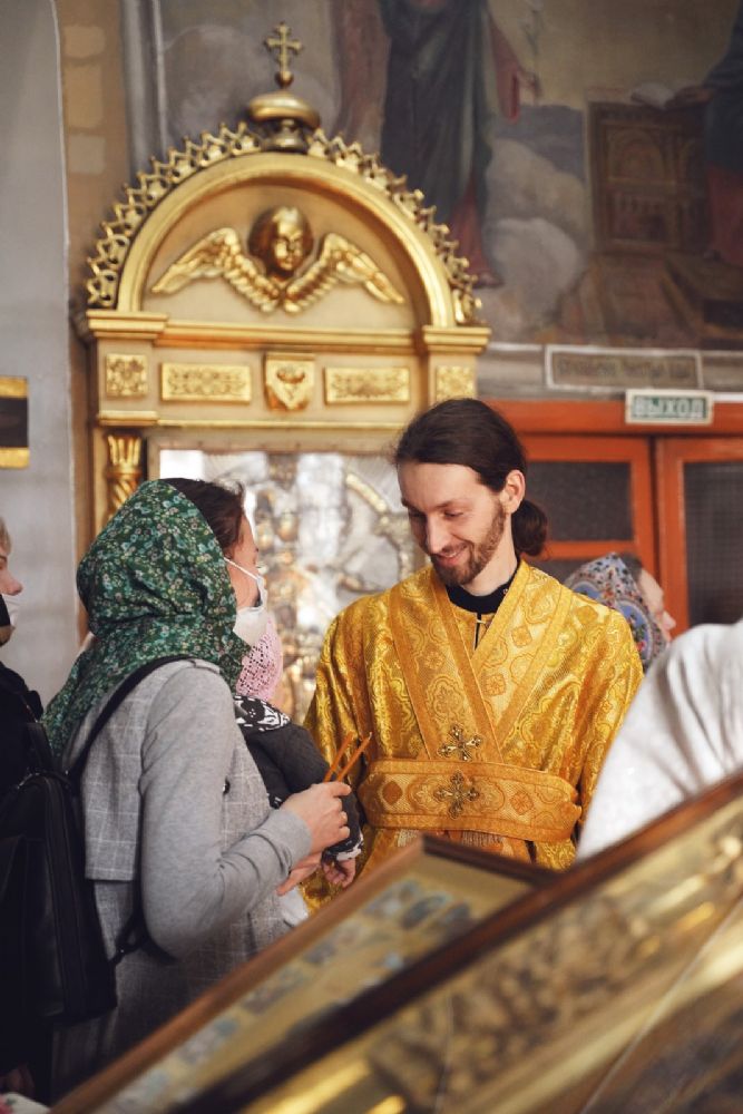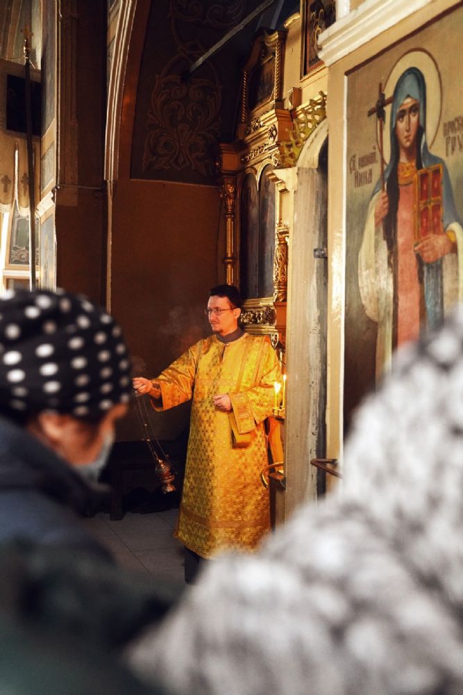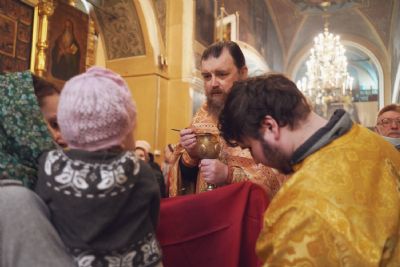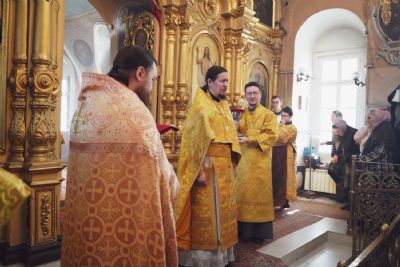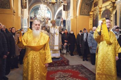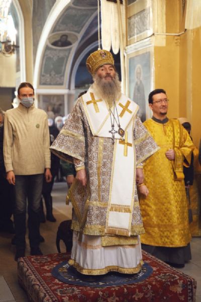 Его Высокопреосвященству сослужили ключарь храма протоиерей Михаил Ильин, клирики храма Сергий Асланов, протодиакон Михаил Козловский и диакон Димитрий Смирнов. Песнопения исполнял хор храма.
