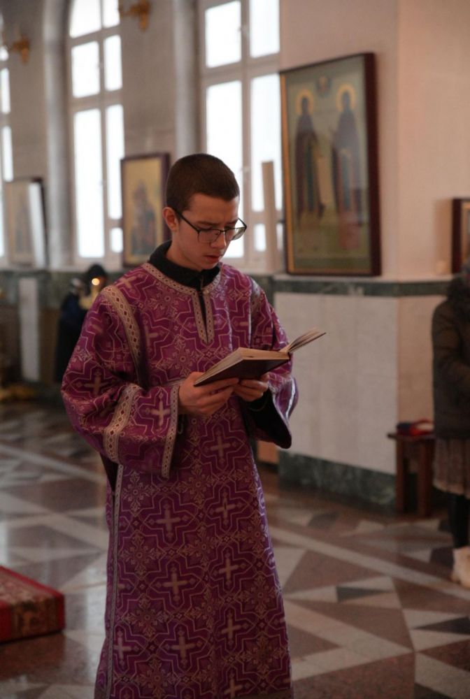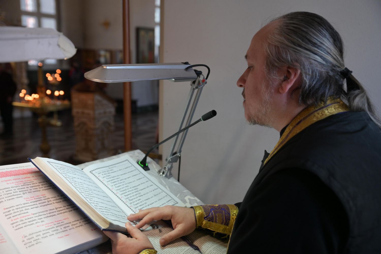 Богослужение началось в 7 часов с утрени. Третий, шестой, девятый часы, служба изобразительных и вечерня были отслужены с чтением положенных по уставу кафизм, поклонов с молитвой Ефрема Сирина и паремией из книги пророка Исаии о грехах народа и богоугодном посте.