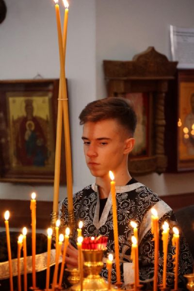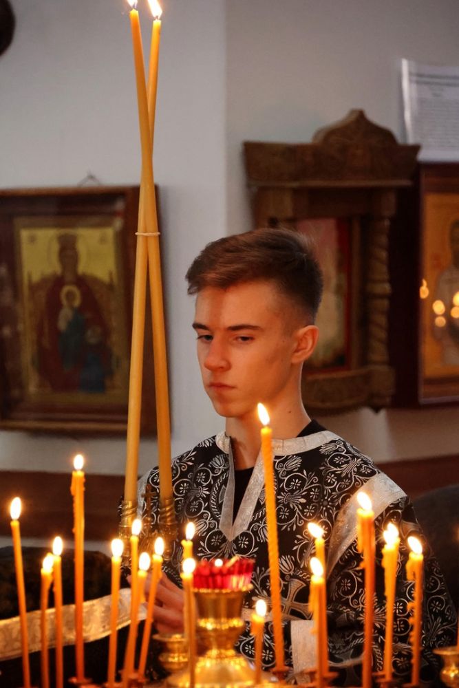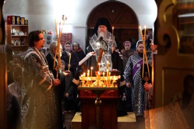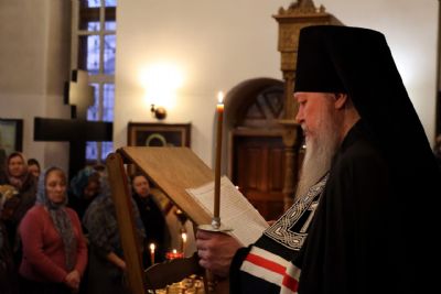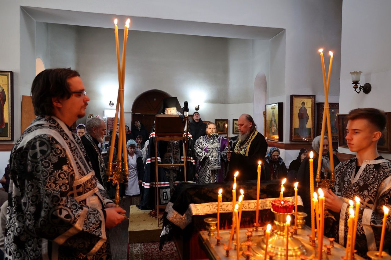 Его Преосвященству сослужили настоятель храма протоиерей Александр Михайлов и клирики кафедрального собора. Богослужебные песнопения исполнял хор Скорбященского храма под управлением Ирины Канашиной.