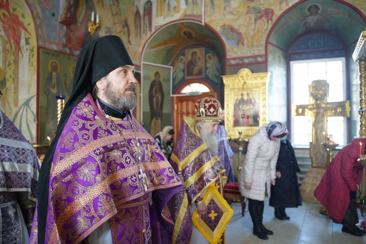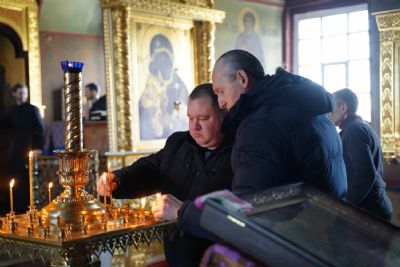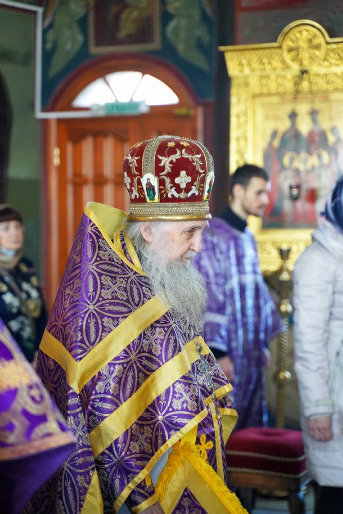Его Высокопреосвященству сослужили секретарь Йошкар-Олинского епархиального управления иеромонах Серафим (Пасанаев), настоятель собора митрофорный протоиерей Евгений Кутырев, клирики собора и протодиакон Михаил Козловский.