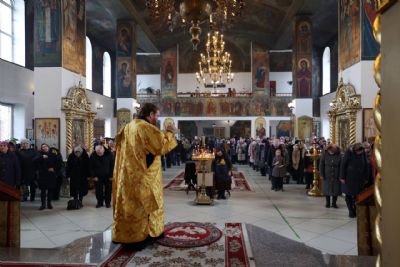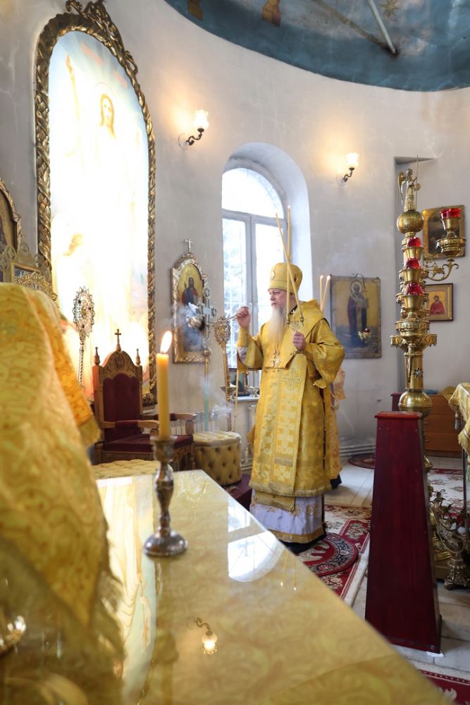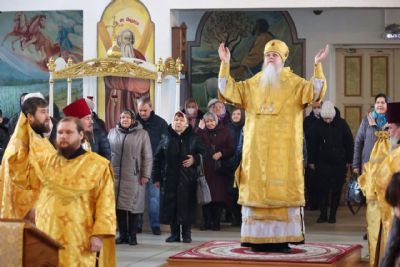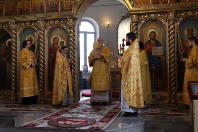 Его Преосвященству сослужили клирики собора. Песнопения исполнял архиерейский хор.