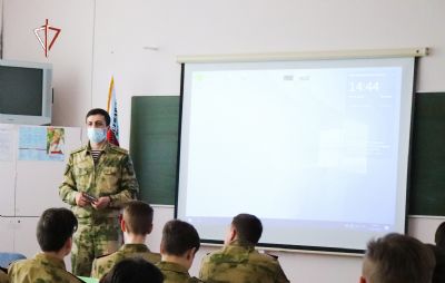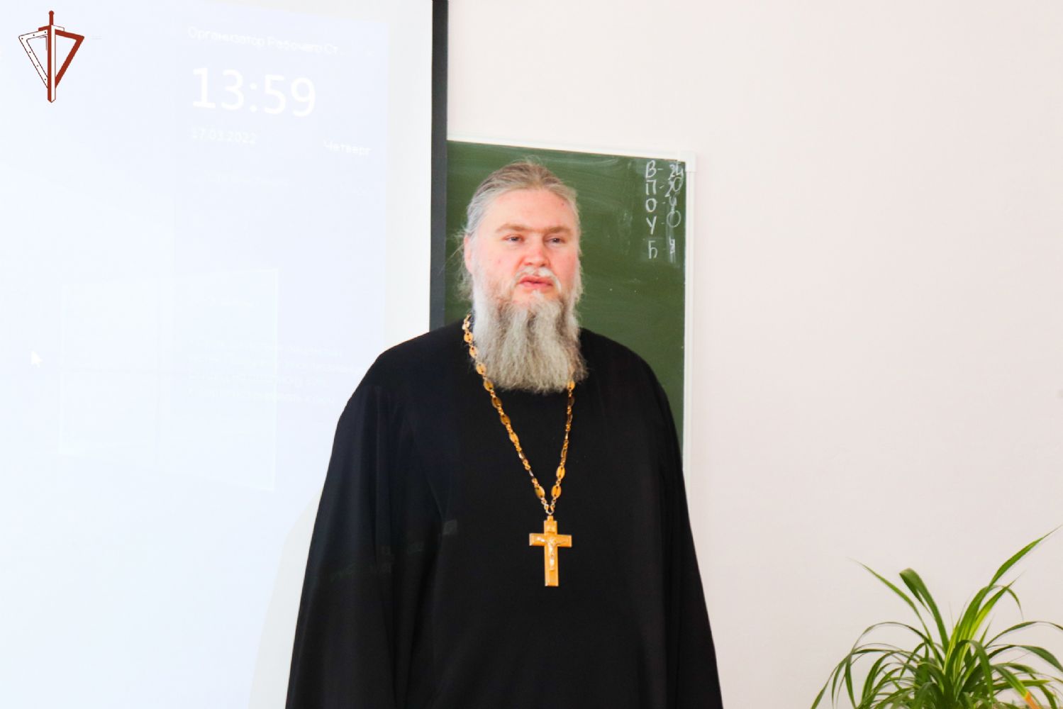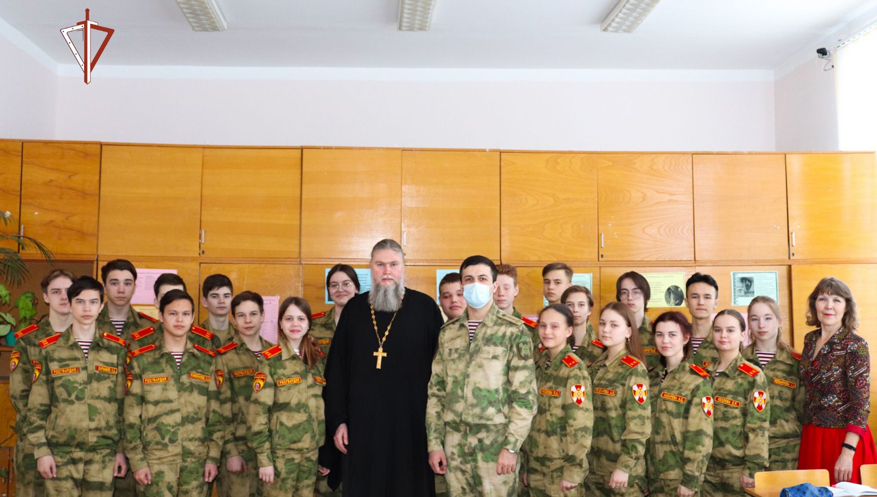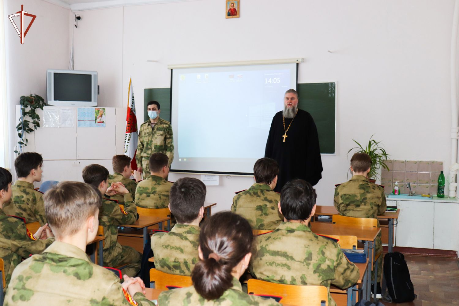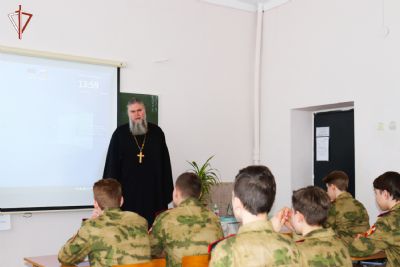 Встреча проходила в рамках акции «Дни Росгвардии», приуроченной ко Дню войск национальной гвардии, который отмечается в стране ежегодно 27 марта. Отец Александр побеседовал с ребятами на актуальные темы: о великодушии и малодушии, о долге и соблазнах, о заступничестве, взаимопонимании и взаимопомощи, а также о кадетском воспитании, взращенном на лучших традициях славной героической истории нашего Отечества.