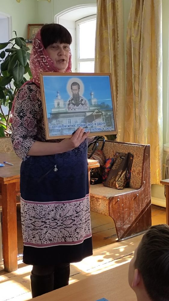 Большой интерес вызвали сообщения ребят о храме святителя Василия Великого в селе Васильевское. Дети узнали, что история церковного прихода в селе Васильевском началась в 1761 году, когда на средства прихожан здесь был возведен деревянный однопрестольный храм, освященный в честь святителя Василия Великого. После чего село, ранее называвшееся Головино, получило современное название – Васильевское. В 1939 году Васильевская церковь была закрыта. С 1941 по 2008 годы здание использовалось под клуб. История возрождения духовной жизни в с. Васильевское началась с назначения настоятелем Юринского храма Архангела Михаила протоиерея Николая Барсукова. Стараниями батюшки в 2009 году началось возрождение храма. Самое активное участие в восстановительных работах принимали жители села. Сейчас отец Николай совершает здесь богослужения.