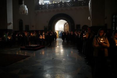 Вечером 26 марта, накануне Крестопоклонной Недели Великого поста, митрополит Йошкар-Олинский и Марийский Иоанн возглавил всенощное бдение в Благовещенском кафедральном соборе.