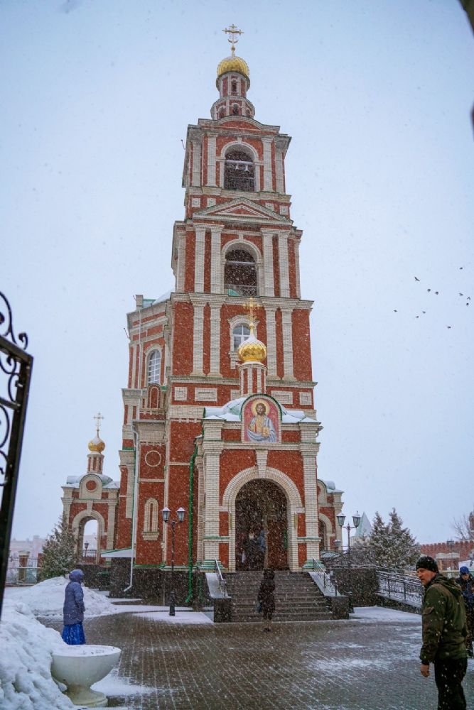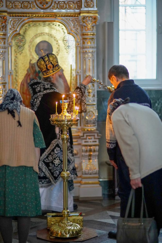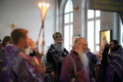 Его Высокопреосвященству сослужили секретарь Йошкар-Олинского епархиального управления иеромонах Серафим (Пасанаев), настоятель собора иерей Алексий Кирюшкин, клирики собора и протодиакон Михаил Козловский. Песнопения исполнял хор собора.