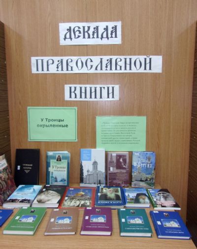 Для посетителей библиотеки были оформлены выставки «Книги монаха Варнавы (Евгения Санина)», «Так бывает… (книги Ирины Рогалевой)», «У Троицы окрыленные (о прп. Сергии Радонежском и Троице-Сергиевой лавре)», «Цель Великого поста – покаяние», «Навстречу детским сердцам (книги Бориса Ганаго)». В индивидуальных беседах с читателями им было рекомендовано немало православной душеполезной литературы.