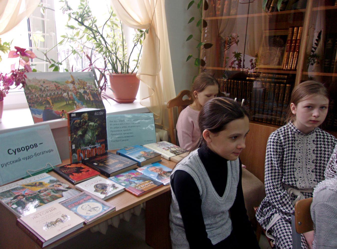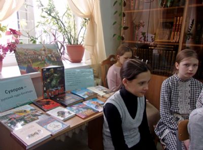 Татьяна Васильевна порекомендовала детям книги о Суворове, а их написано множество. Некоторые из них были представлены на выставке.