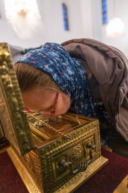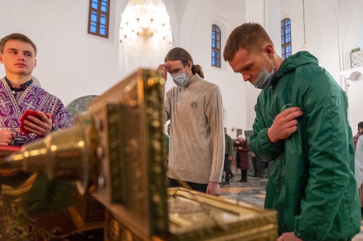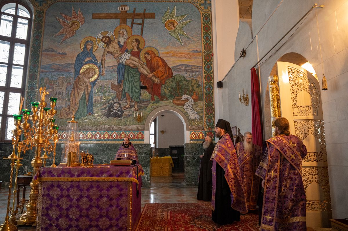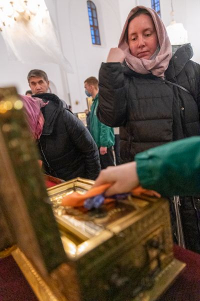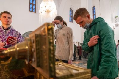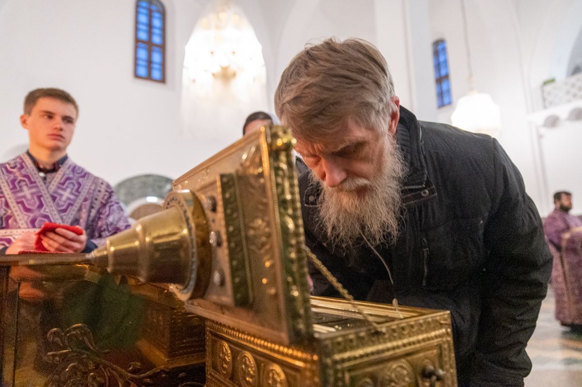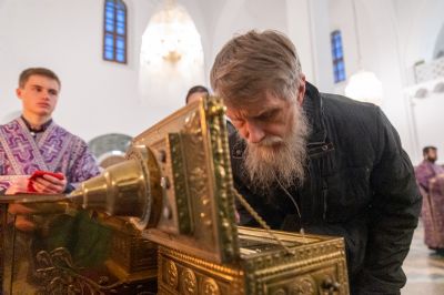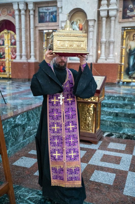 В 4-ю великопостную Неделю празднуется память преподобного Иоанна Лествичника, оставившего Церкви в наследие труд «Лествица» – ступени восхождения души человеческой к Богу. Для поклонения верующим из алтаря собора был вынесен ковчег с мощами преподобного.