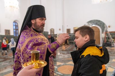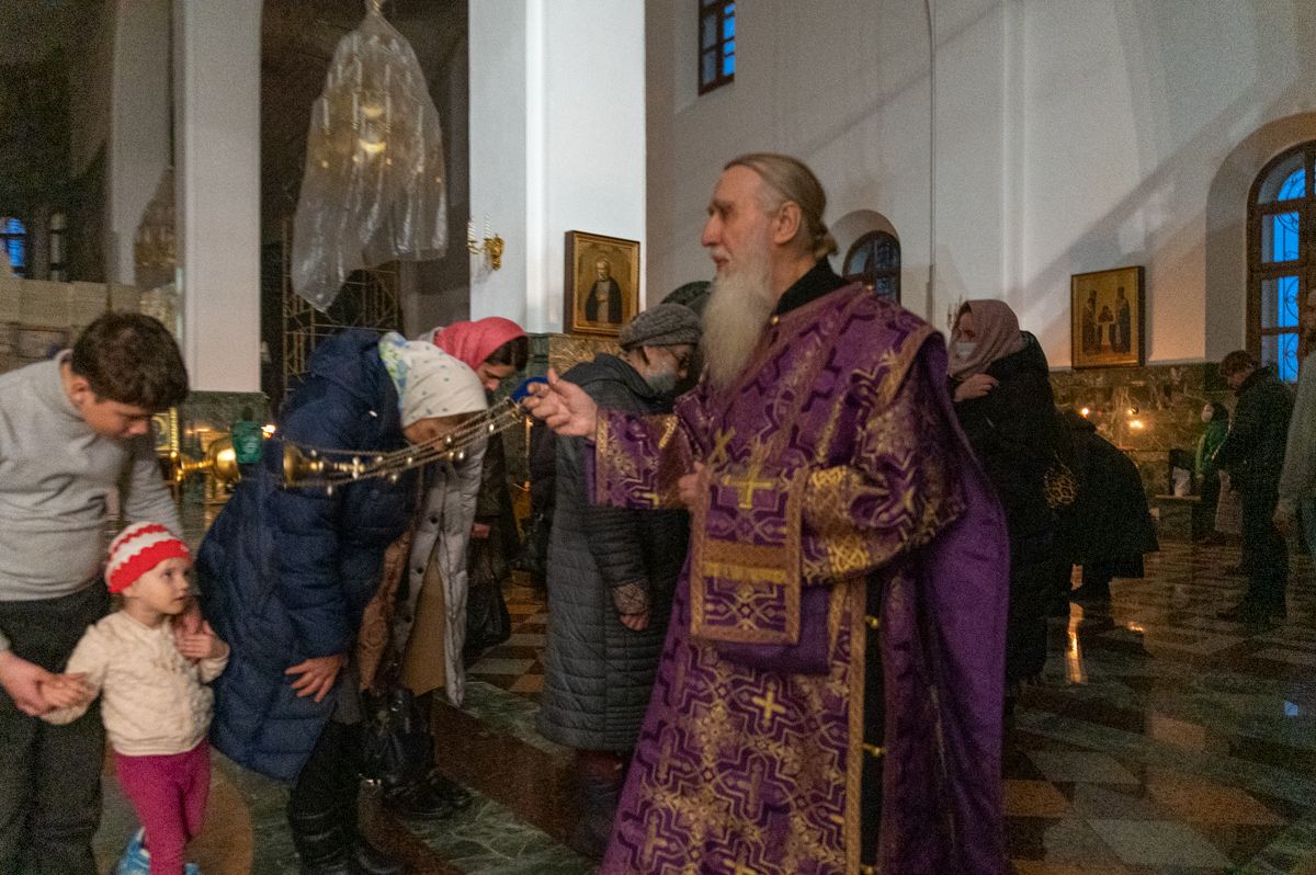 На утрени звучали стихиры и канон преподобного Иоанна Лествичника. После чтения Евангелия верующие помазывались освященным елеем.