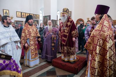 Владыке сослужили секретарь Йошкар-Олинского епархиального управления иеромонах Серафим (Пасанаев), настоятель храма иерей Александр Лоскутов, клирики храма и протодиакон Михаил Козловский. Песнопения исполнял хор храма под управлением регента Наталии Поповой.