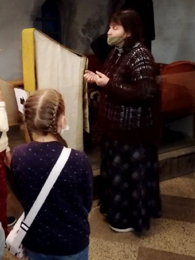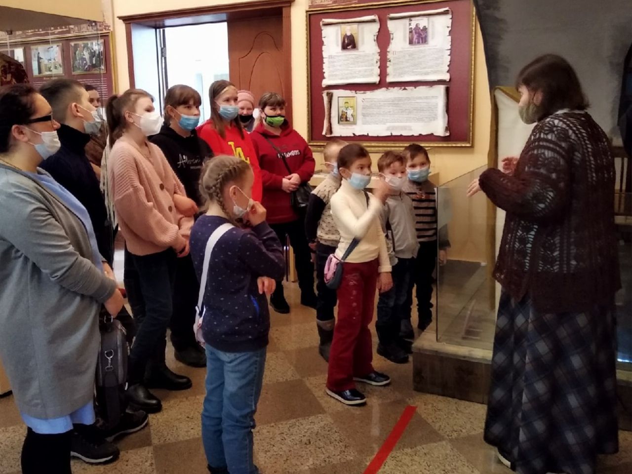 Экскурсию для ребят и их родителей провела сотрудник музея Светлана Каплунова. Ребята услышали историю явления Мироносицкой иконы Божией Матери, узнали кто такие монахи, чем они отличаются от других людей. Познакомились на макете с устройством храма и даже смогли увидеть самую главную часть храма – алтарь и святой престол.
