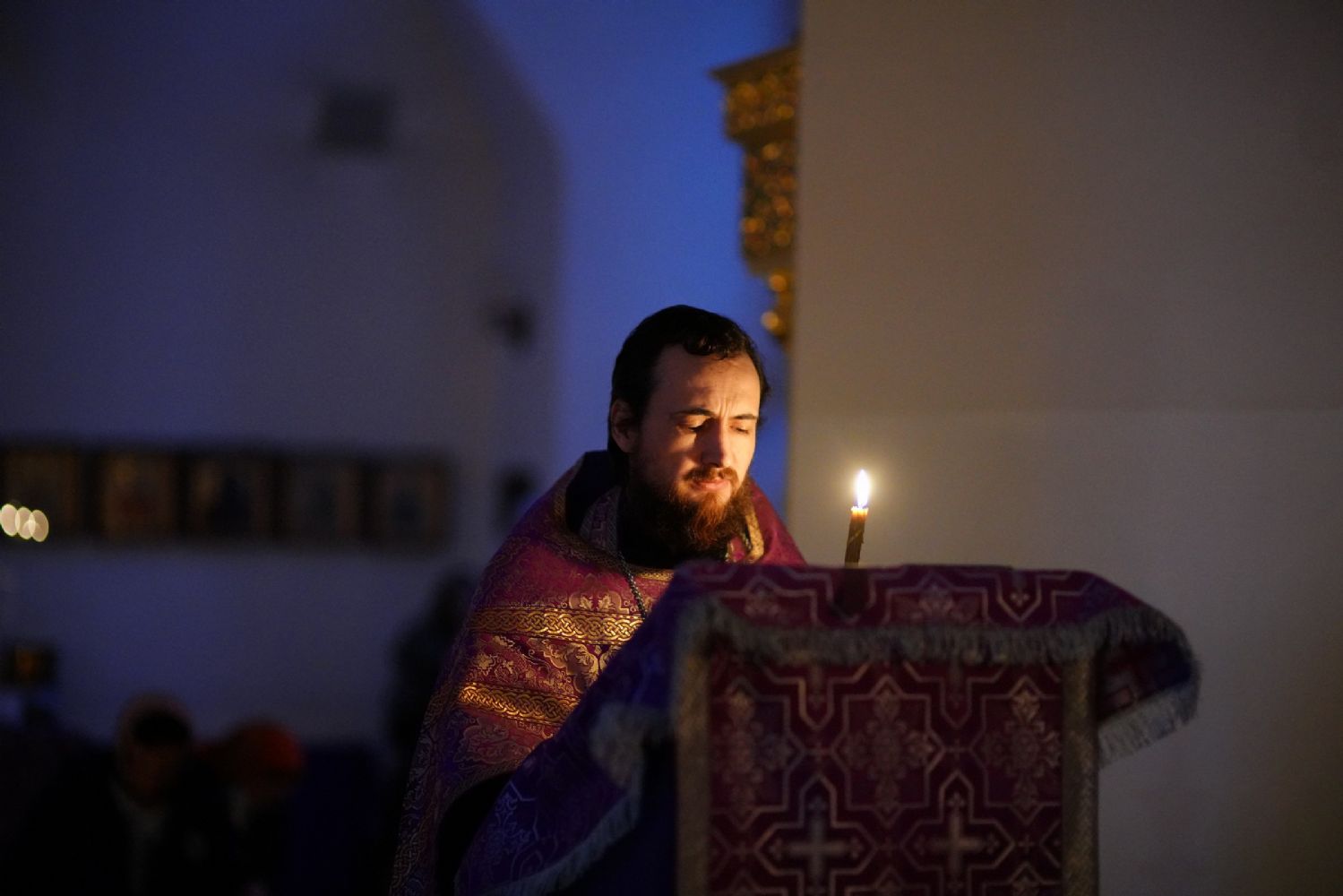 Далее чтение канона продолжилось - с 4-й по 9-ю песни читали иеромонах Серафим (Пасанаев), протоиерей Александр Бачурин, протоиерей Василий Лихачев, иереи Константин Домрачев, Виктор Умрихин и Николай Бабич.