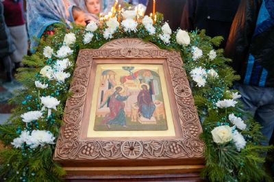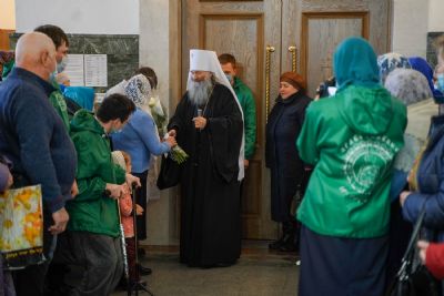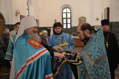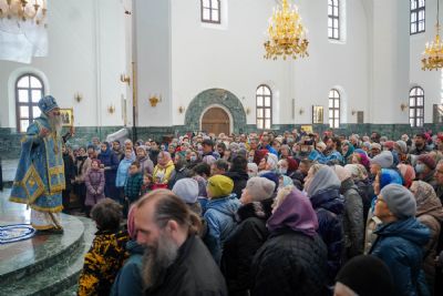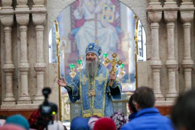 Затем в храме с амвона владыка обратился к собравшимся с праздничной проповедью.