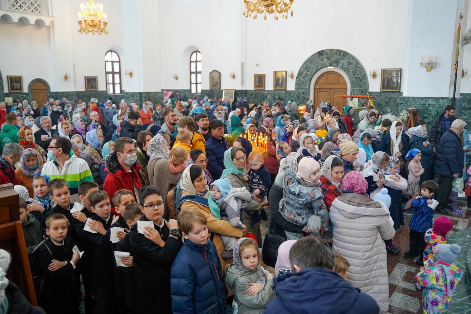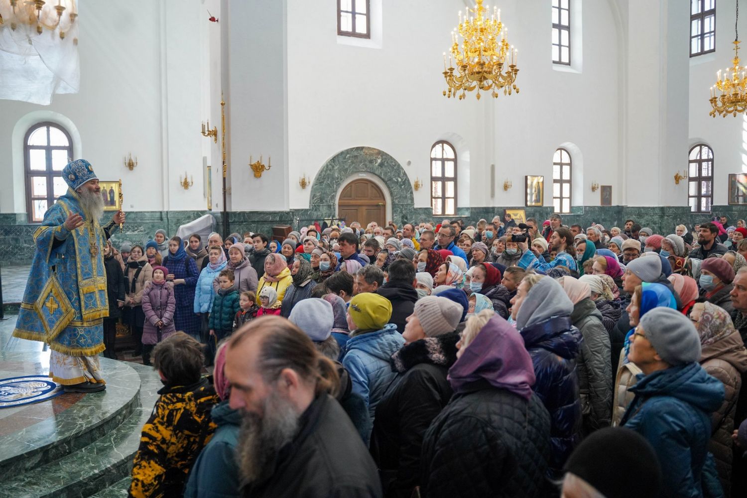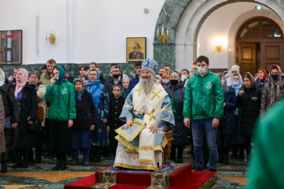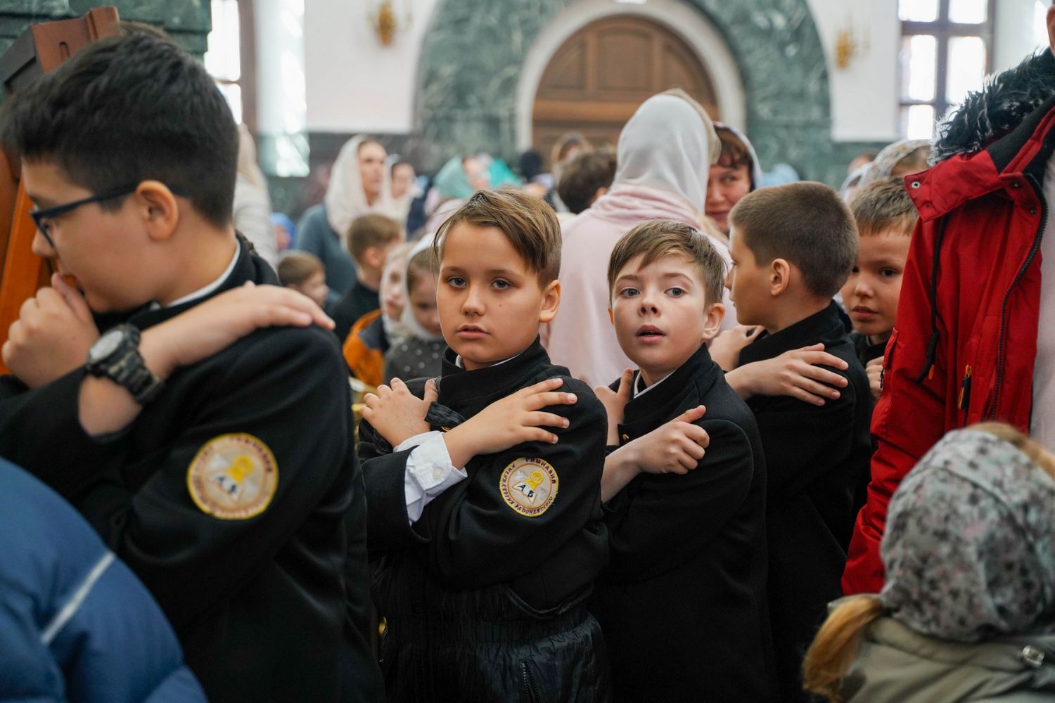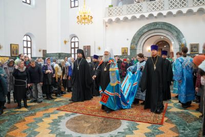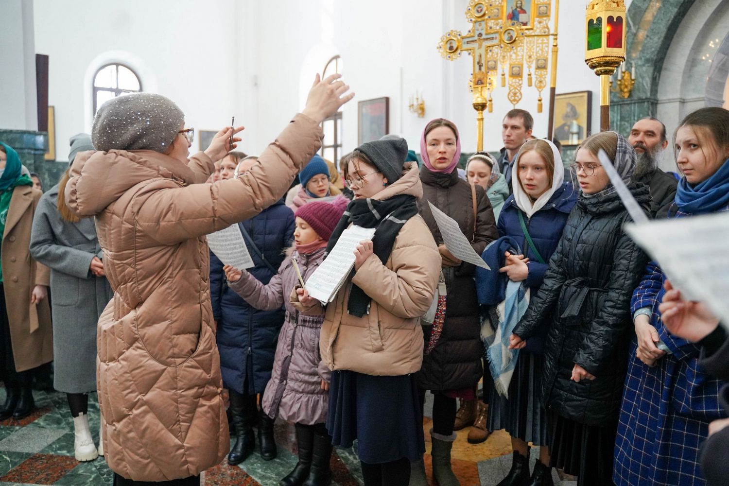 Его Высокопреосвященству сослужили секретарь Йошкар-Олинского епархиального управления иеромонах Серафим (Пасанаев), ключарь собора протоиерей Сергий Поглазов, клирики собора и протодиакон Михаил Козловский. Песнопения исполнял детско-юношеский хор «Благовест» под управлением регента Татьяны Черновой.